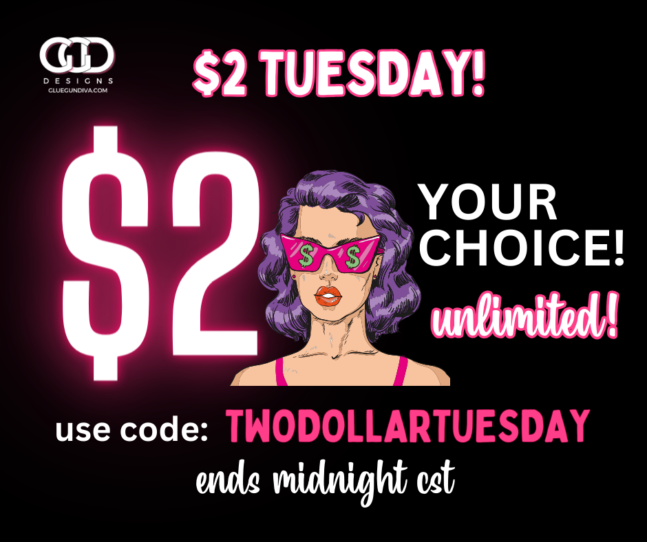 Use code TWODOLLARTUESDAY at checkout and get designs for just $2 ea. Unlimited use!