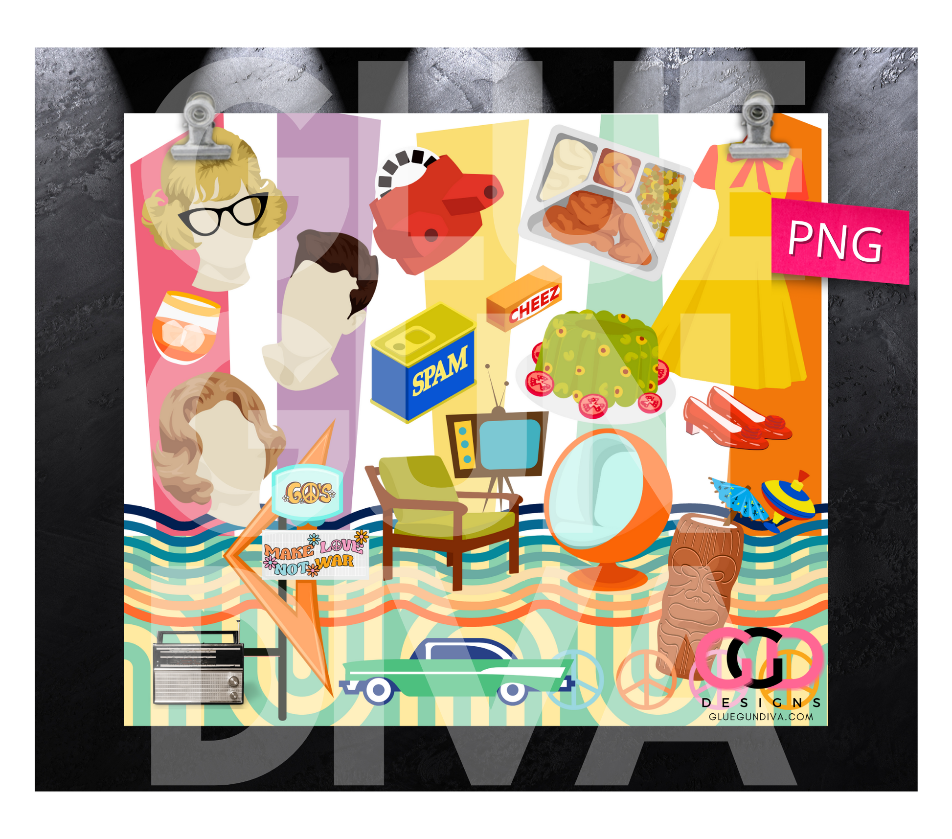 1960s- Digital tumbler wrap for 20 oz skinny straight tumbler