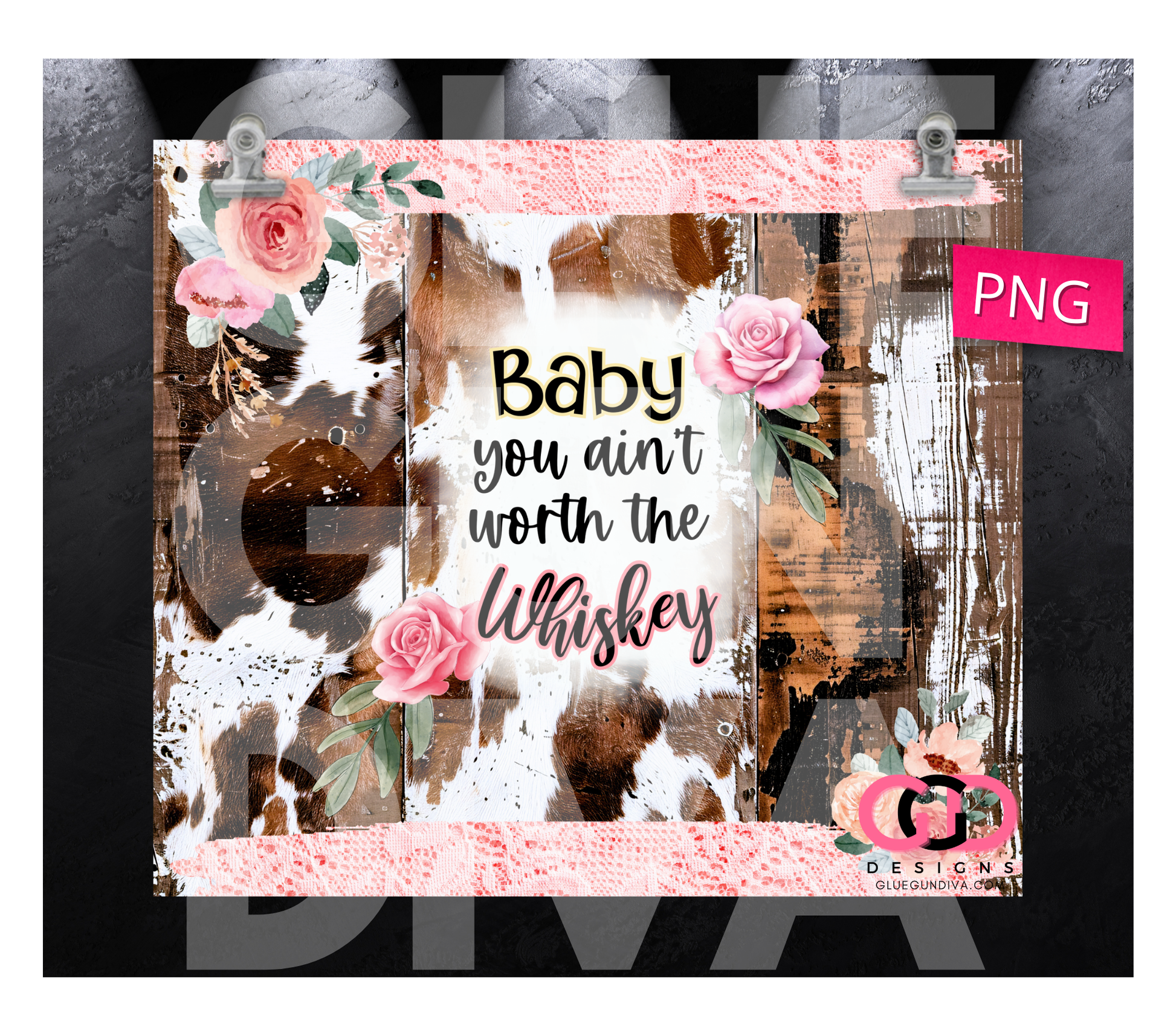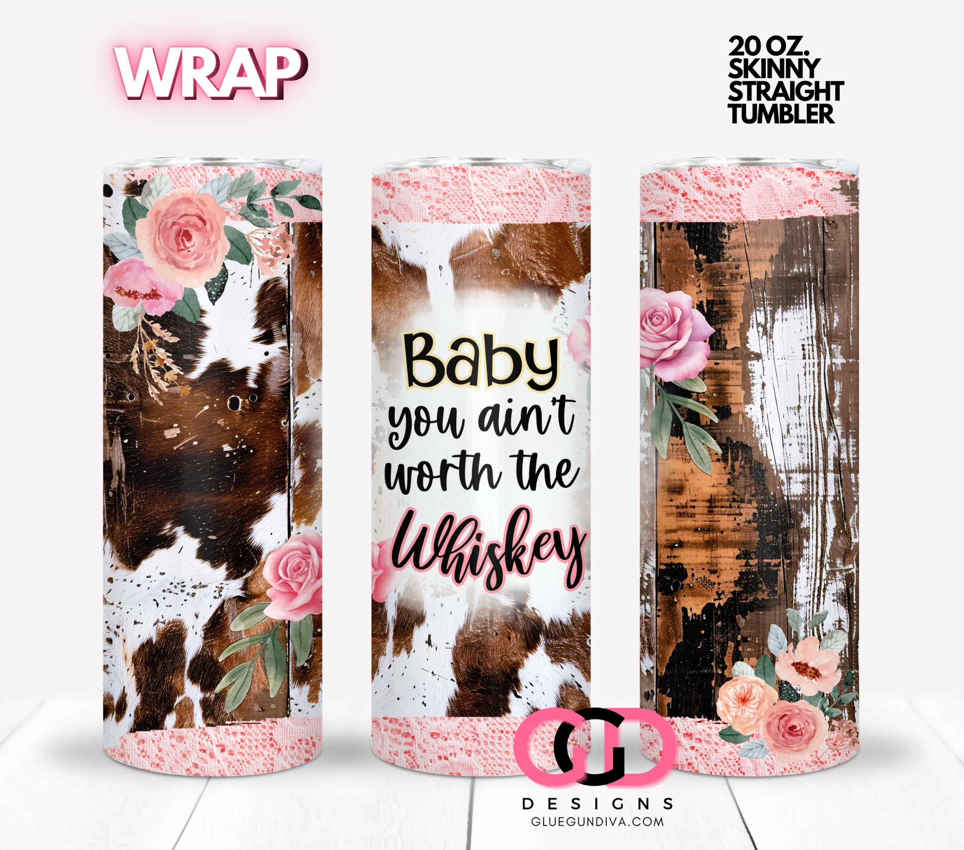 Baby You Ain't Worth the Whiskey - Digital tumbler wrap for 20 oz skinny straight tumbler
