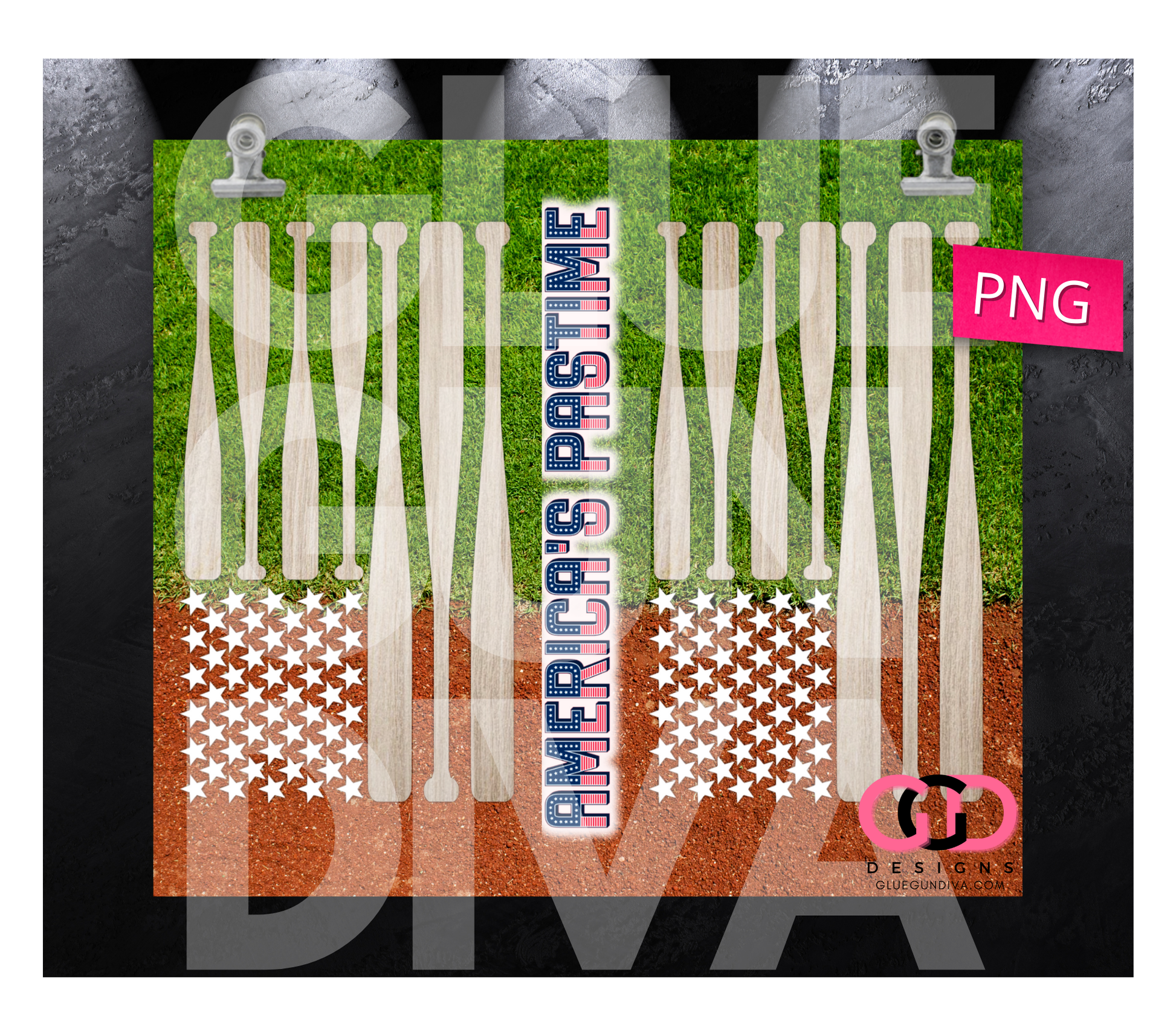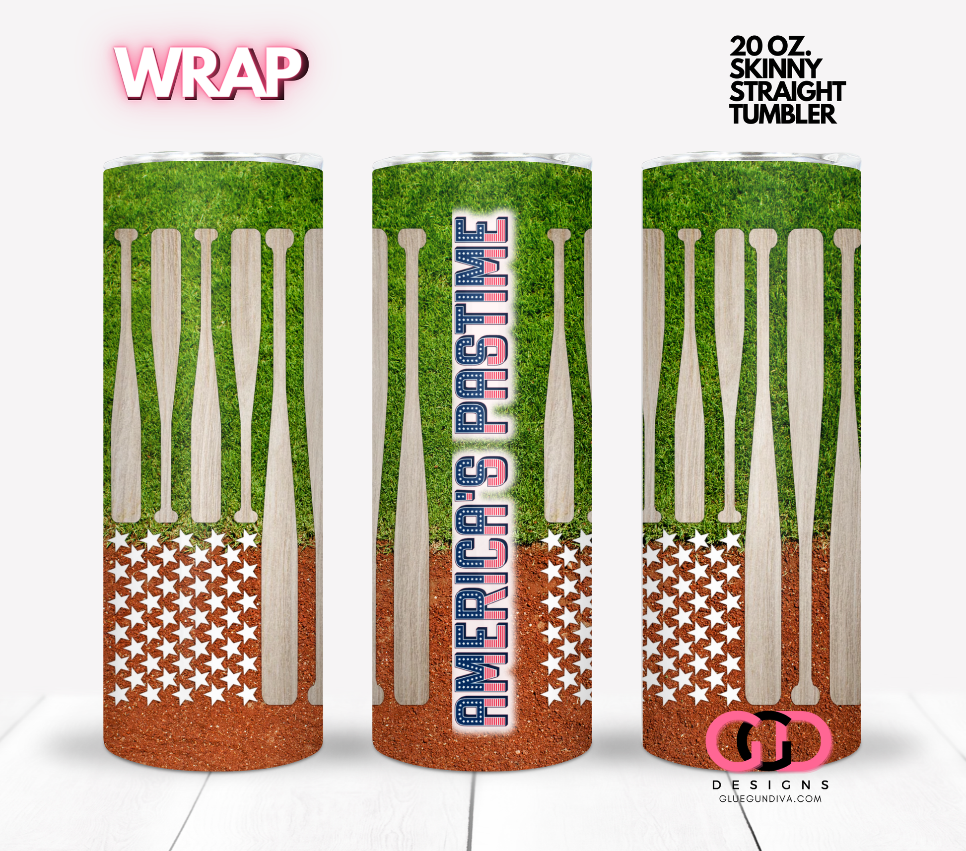 Baseball America's Past Time - Digital tumbler wrap for 20 oz skinny straight tumbler