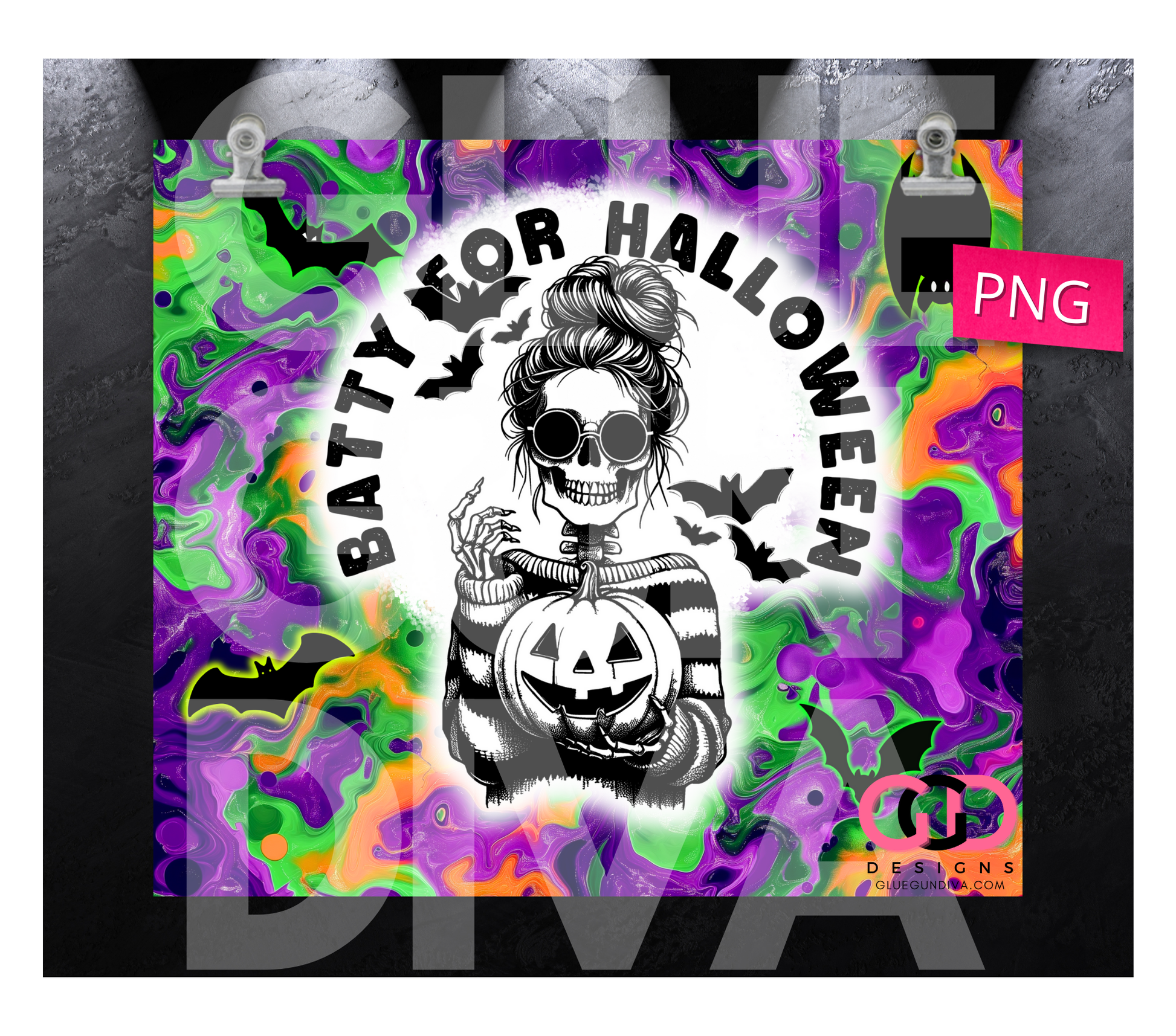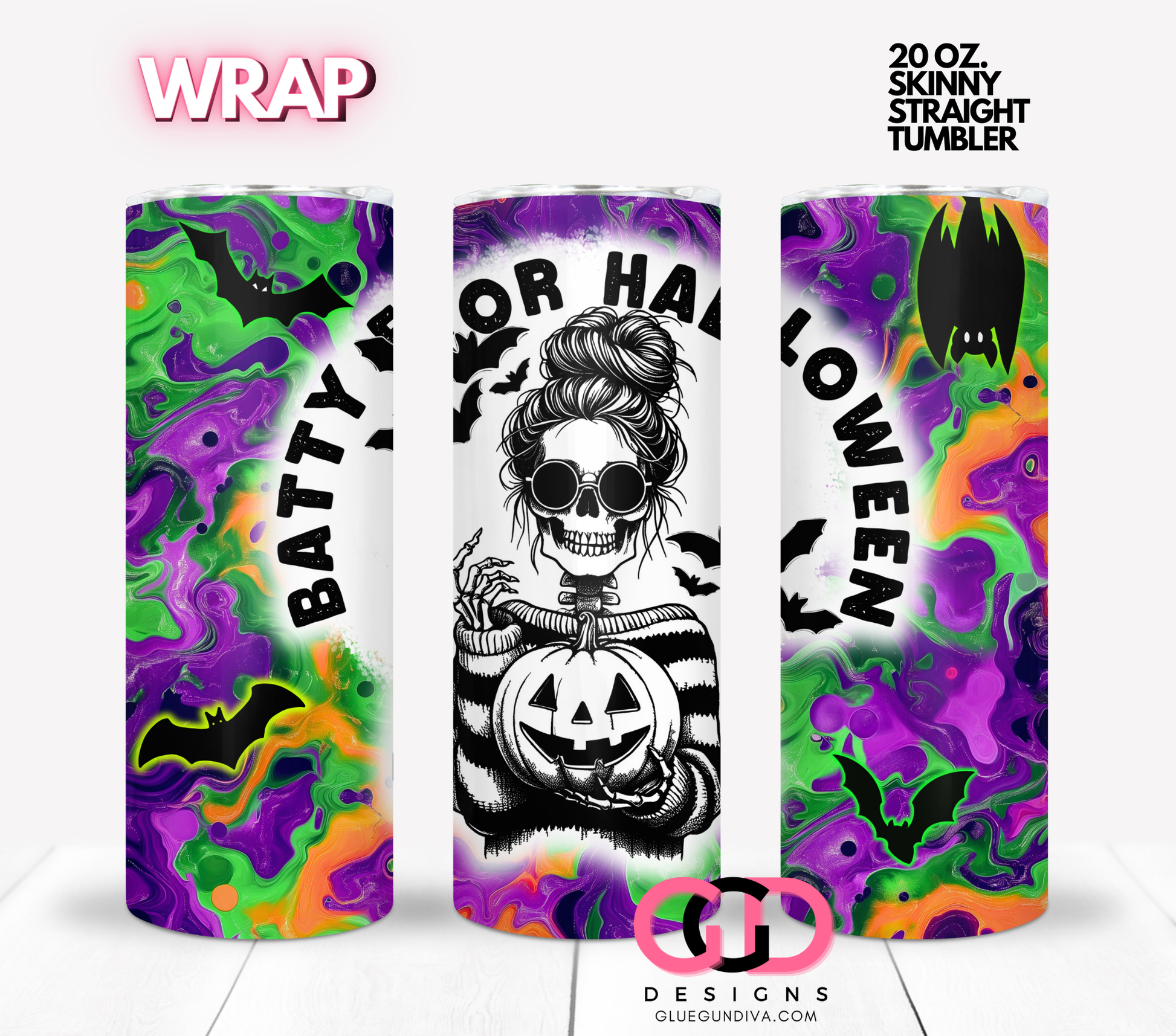 Batty for Halloween - Digital tumbler wrap for 20 oz skinny straight tumbler
