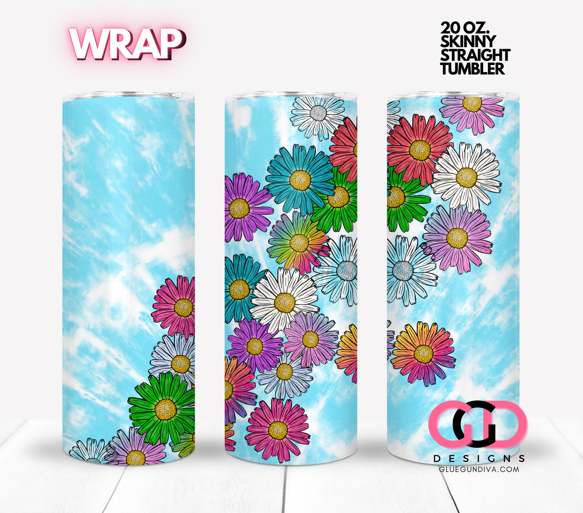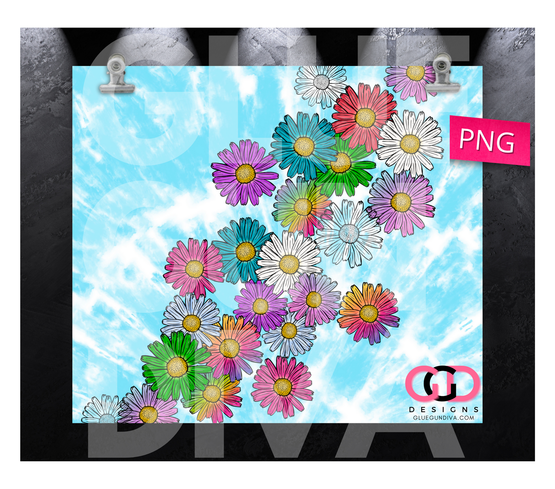 Colorful daisies on tiedye - Digital tumbler wrap for 20 oz skinny straight tumbler