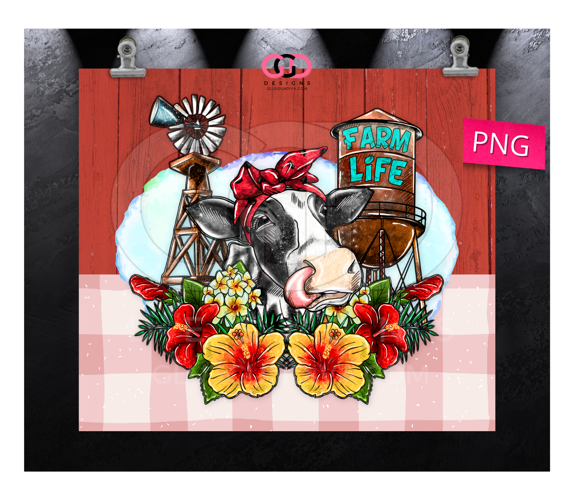 Cow Farm Life- Digital tumbler wrap for 20 oz skinny straight tumbler