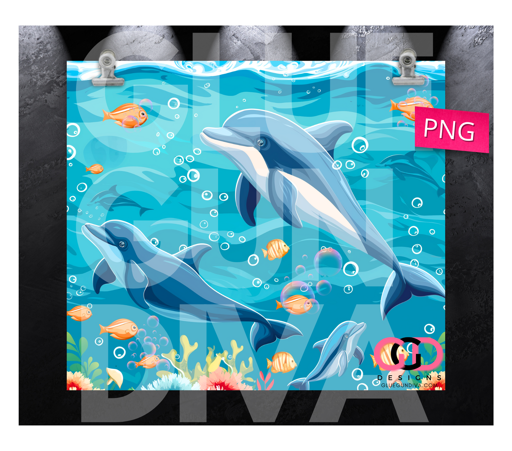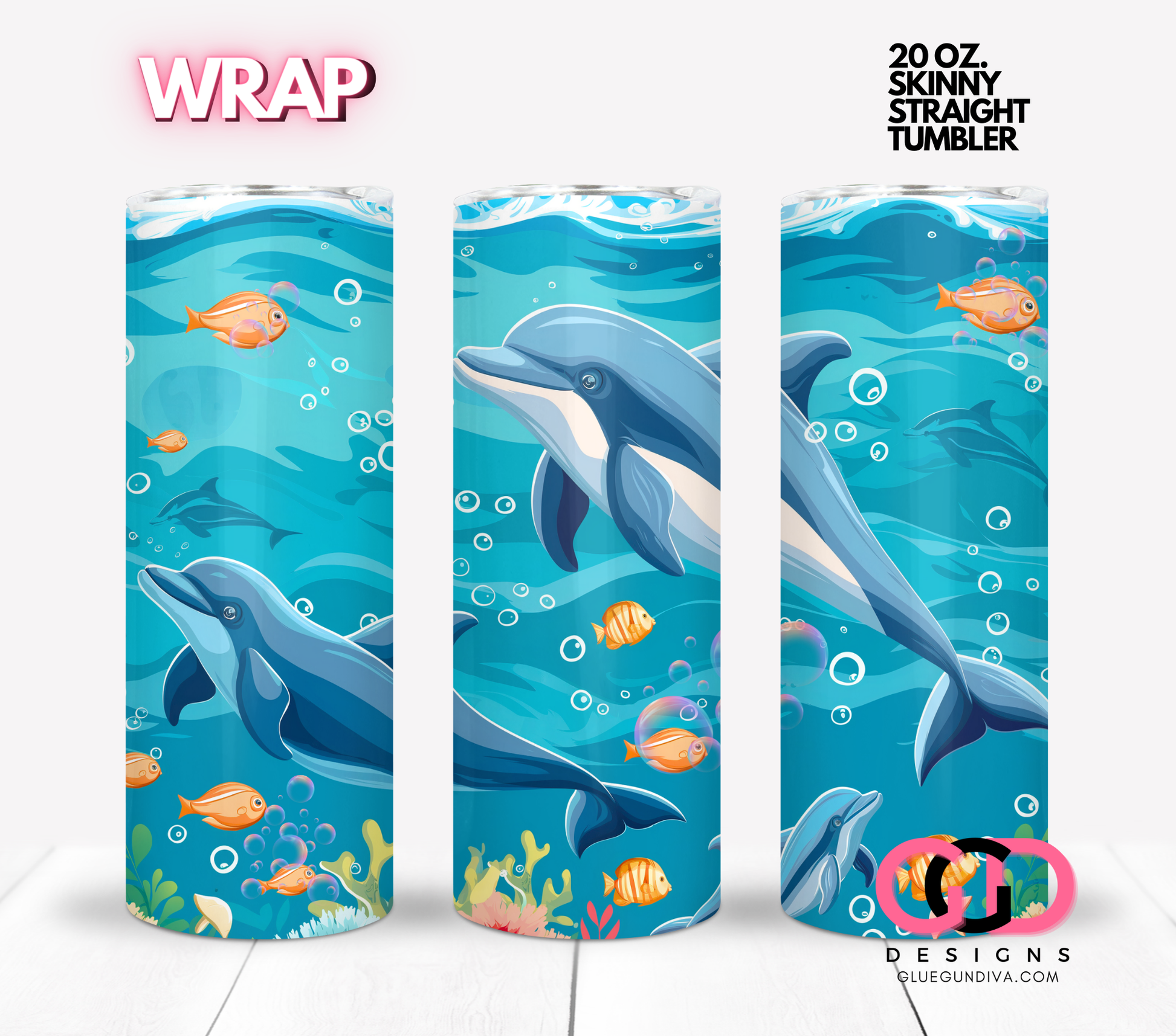 Dolphin Swim - Digital tumbler wrap for 20 oz skinny straight tumbler