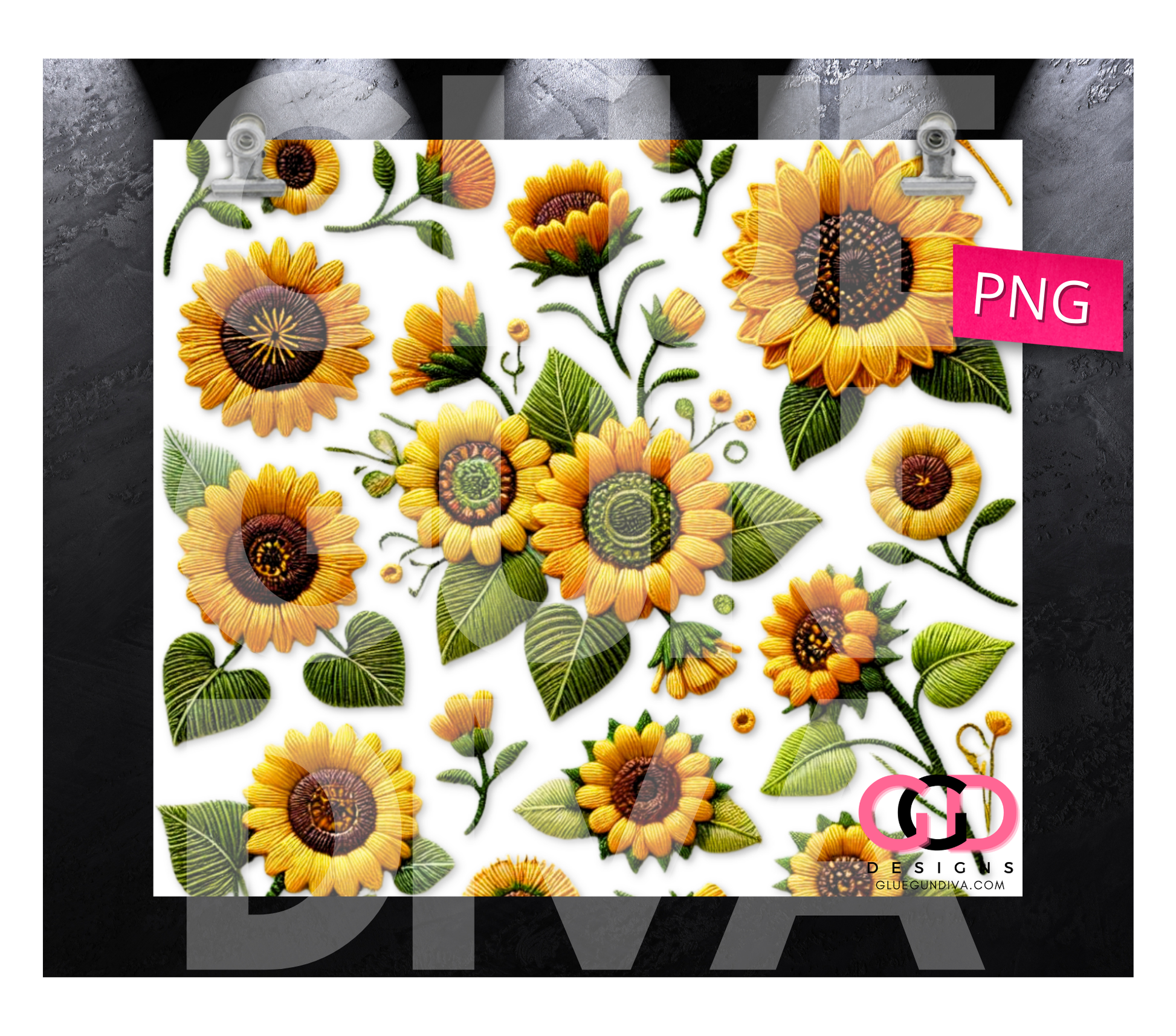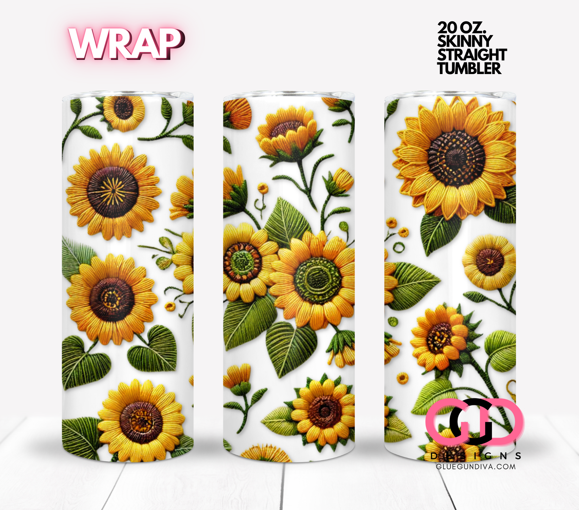 Embroidered Sunflowers- Digital tumbler wrap for 20 oz skinny straight tumbler