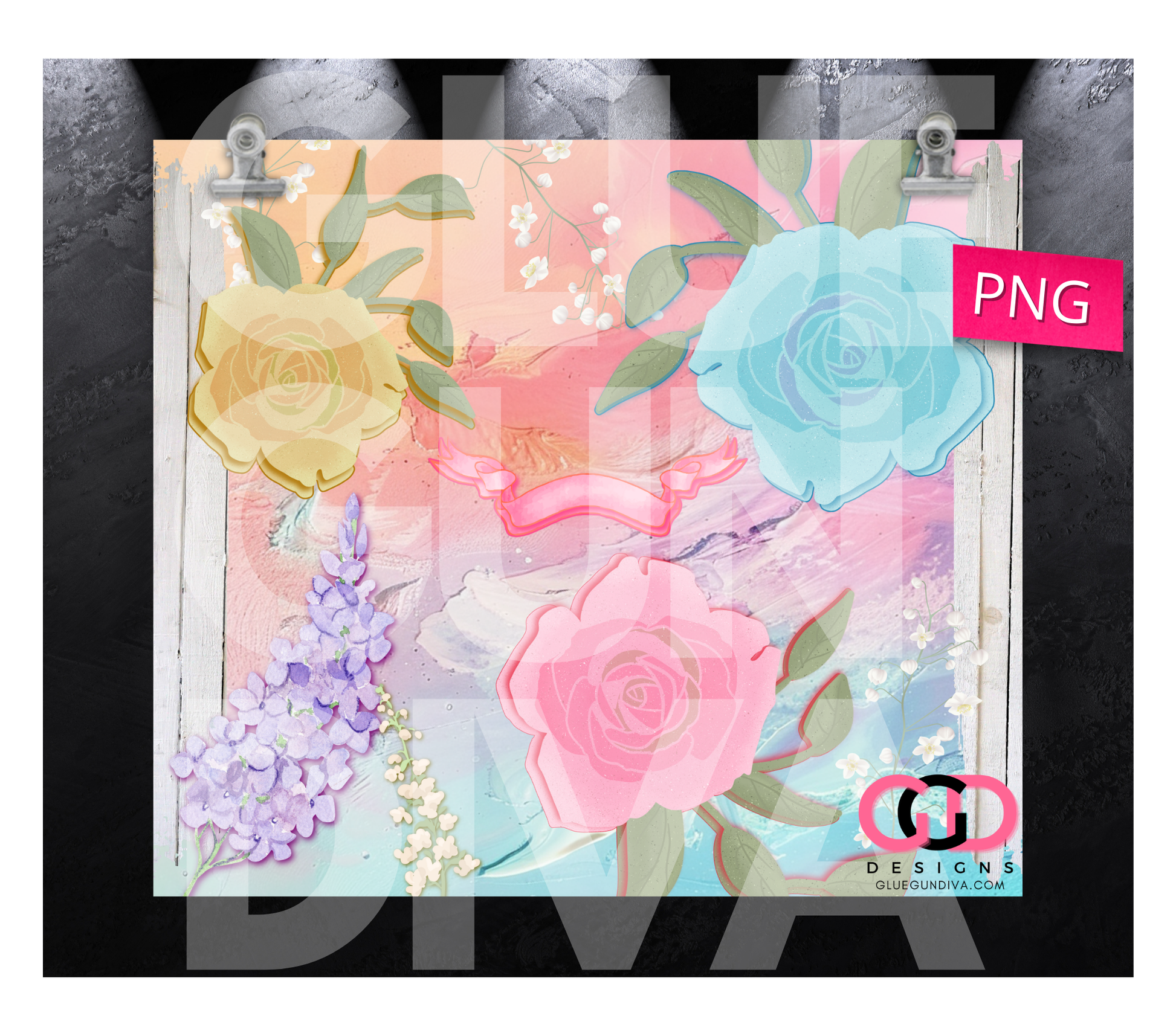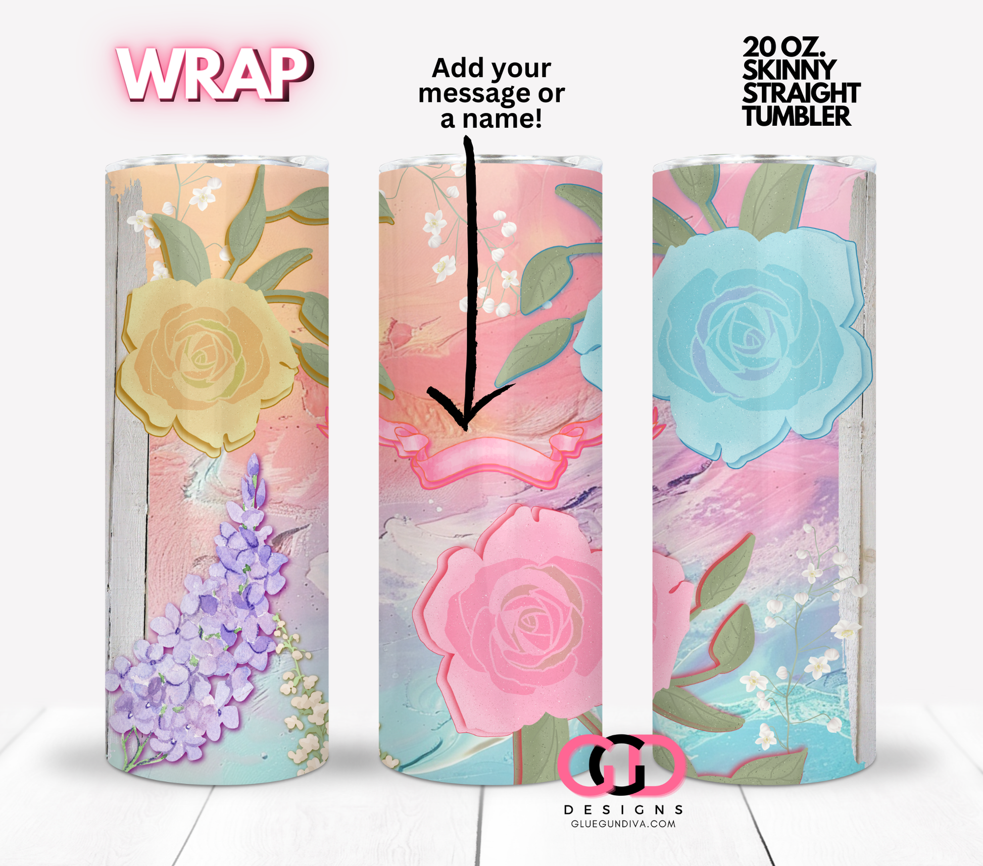 Flowers and Banner Pastels - Digital tumbler wrap for 20 oz skinny straight tumbler