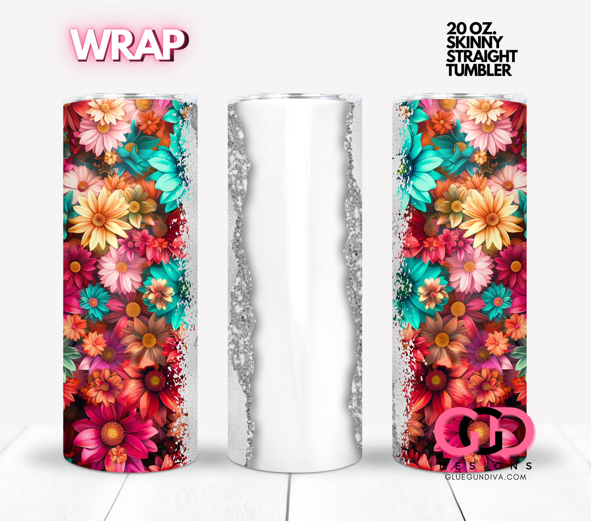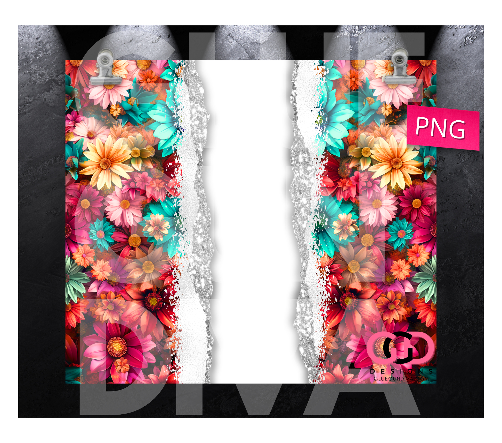 Flowers and Silver Edges Blank - Digital tumbler wrap for 20 oz skinny straight tumbler