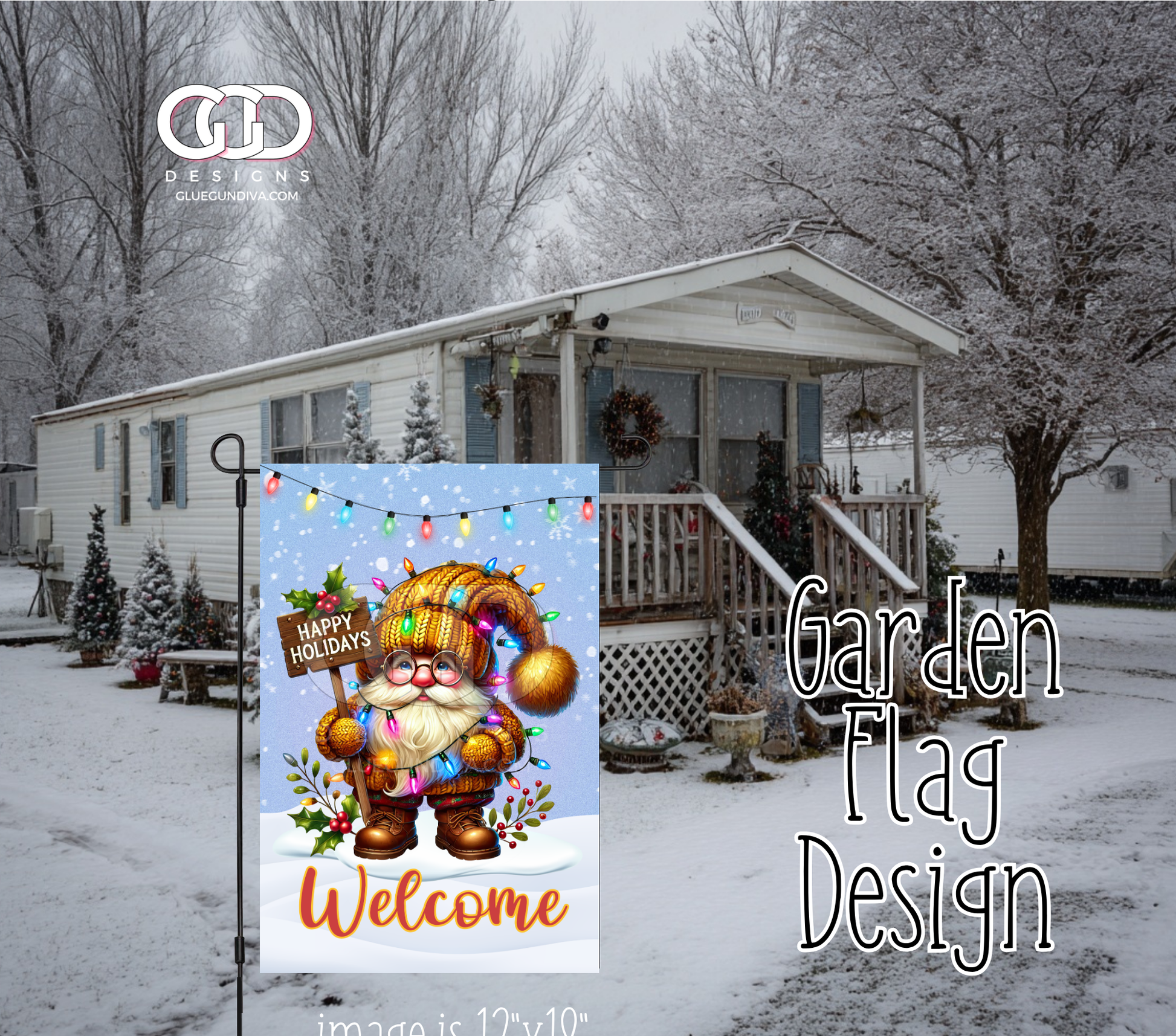 Gnome Happy Holidays Lights - Garden Flag Designs