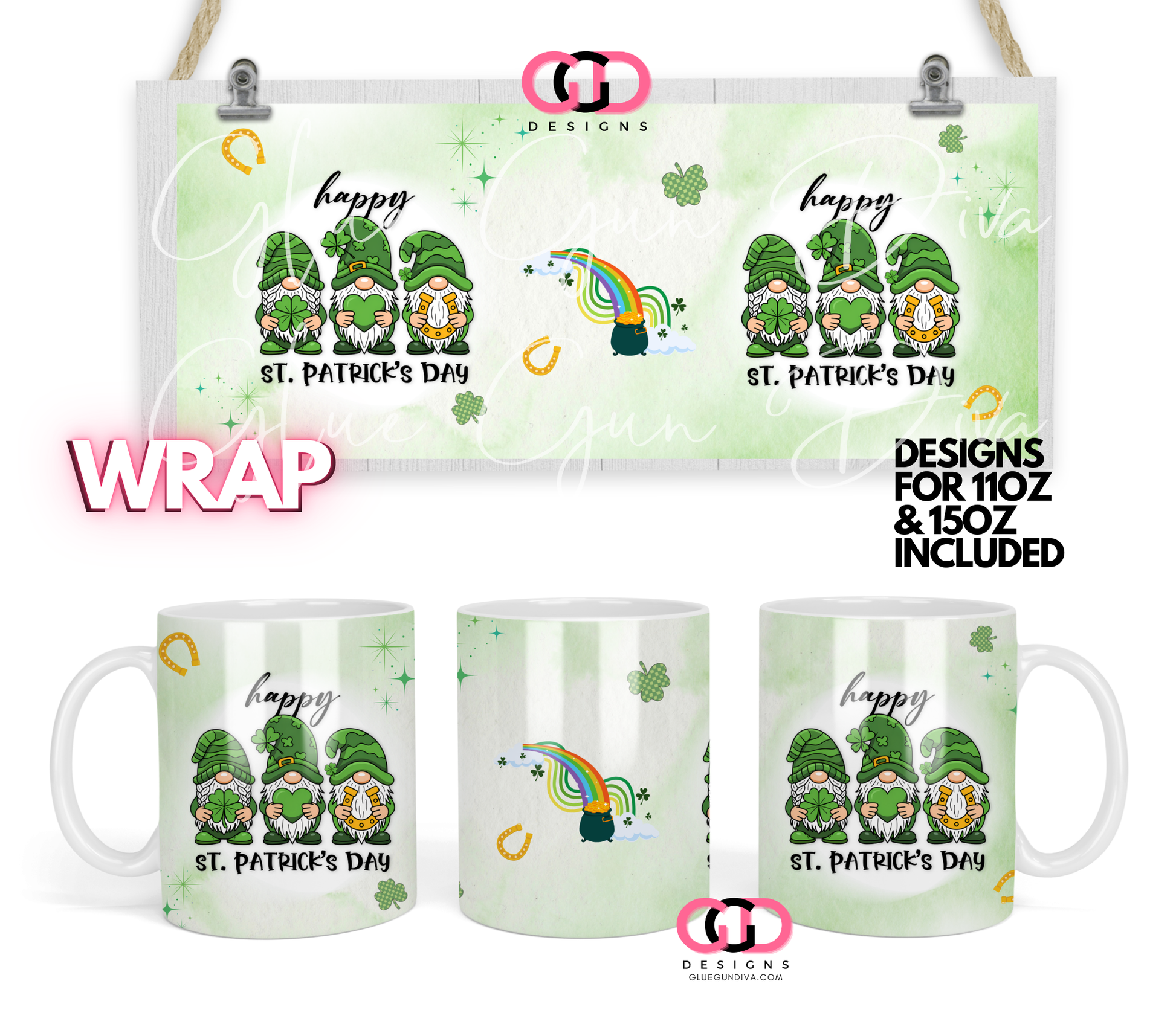 Happy St Patrick's Day Gnomes - Digital mug wrap for 11 and 15 oz