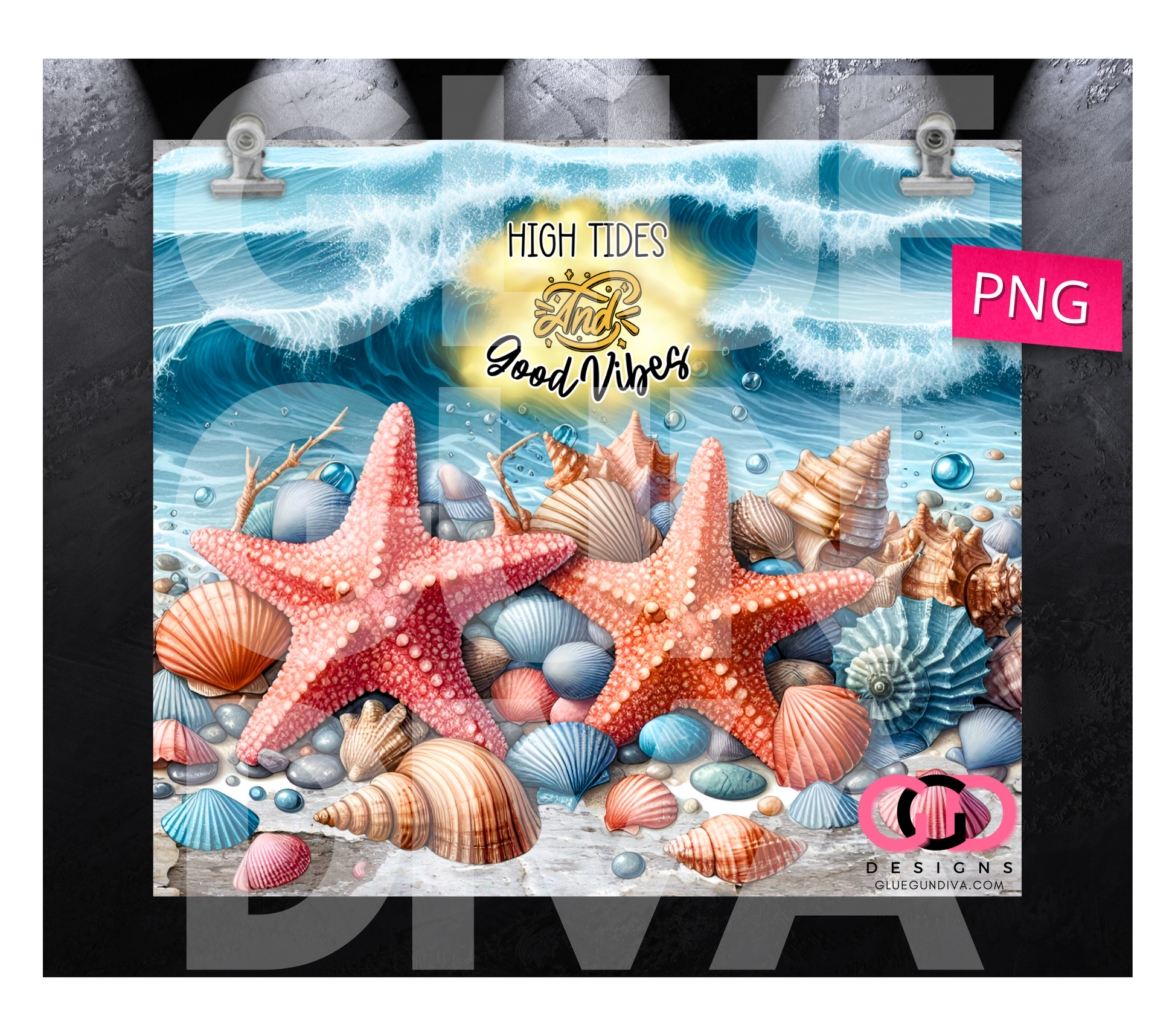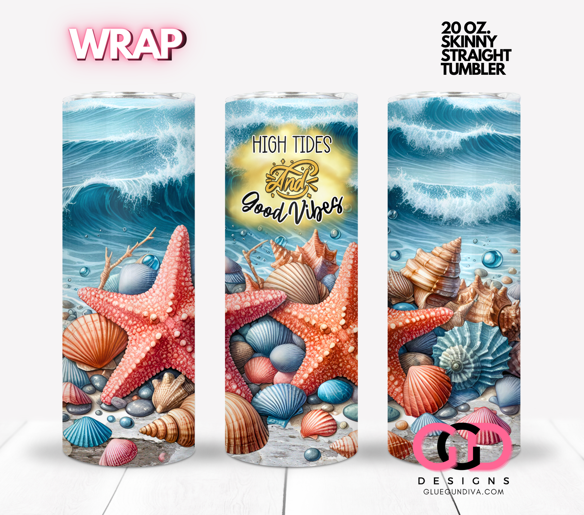 High Tides and Good Vibes - Digital tumbler wrap for 20 oz skinny straight tumbler