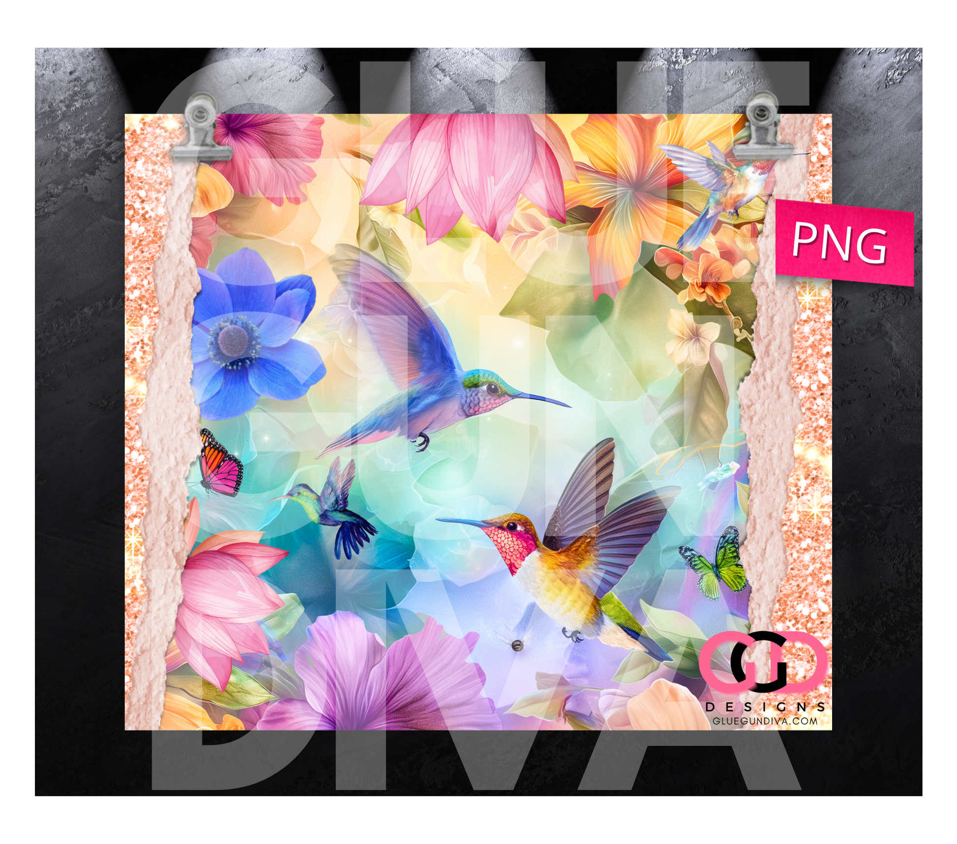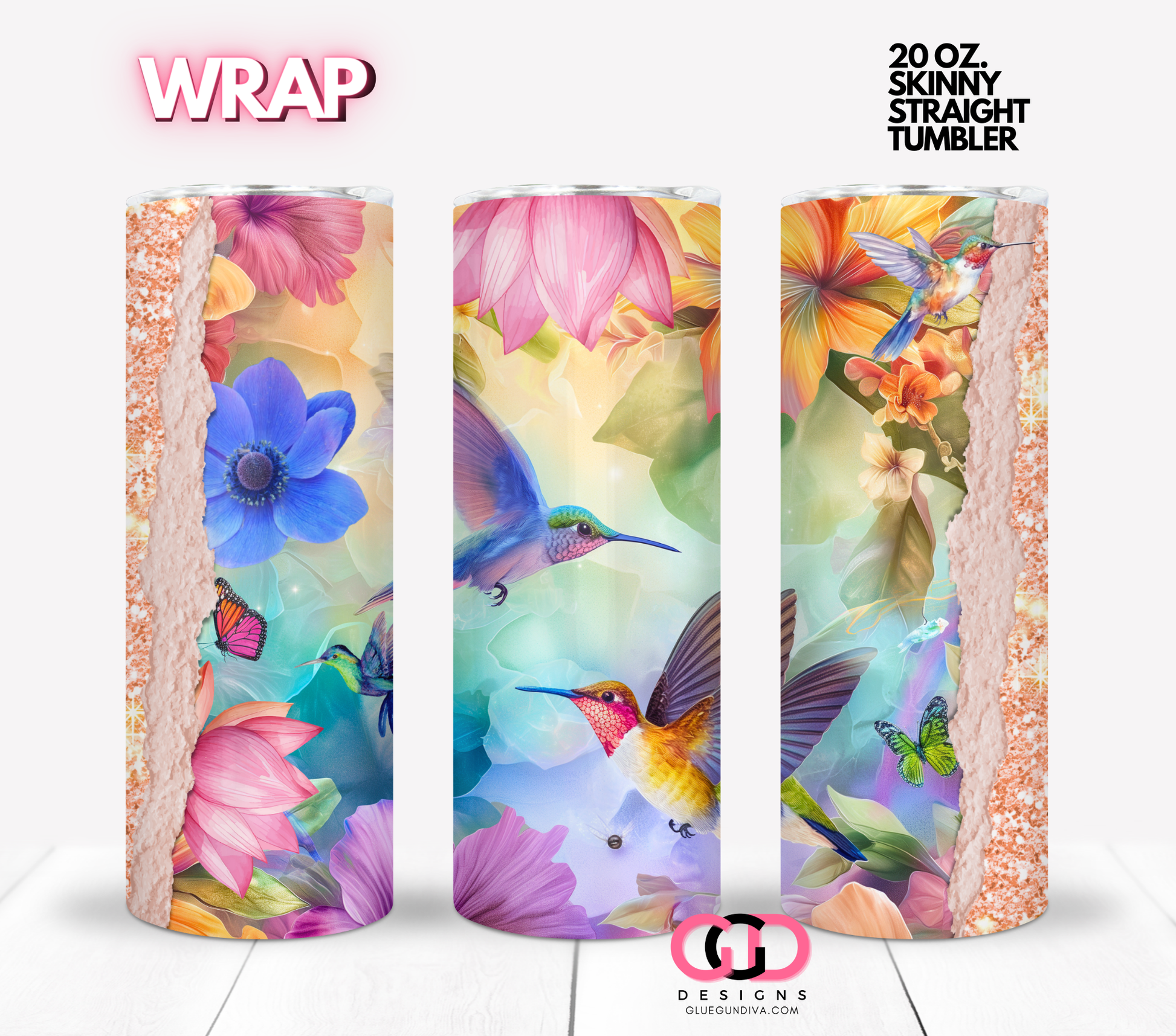 Hummingbird Paradise- Digital tumbler wrap for 20 oz skinny straight tumbler