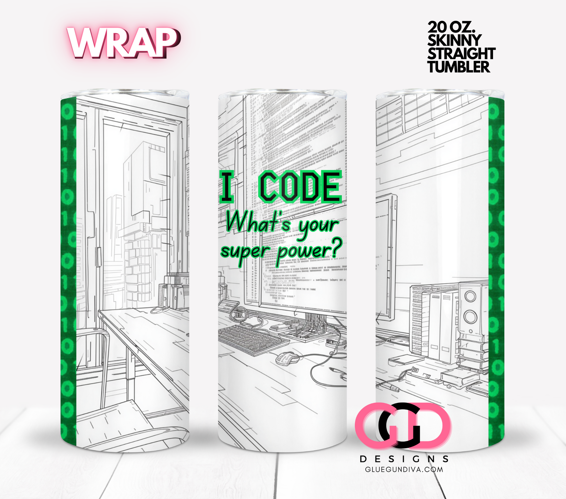 I Code Superpower - Digital tumbler wrap for 20 oz skinny straight tumbler