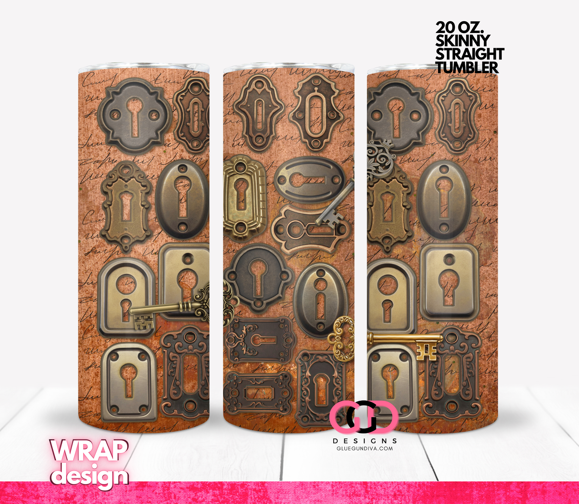 Locks and Keys - Digital tumbler wrap for 20 oz skinny straight tumbler