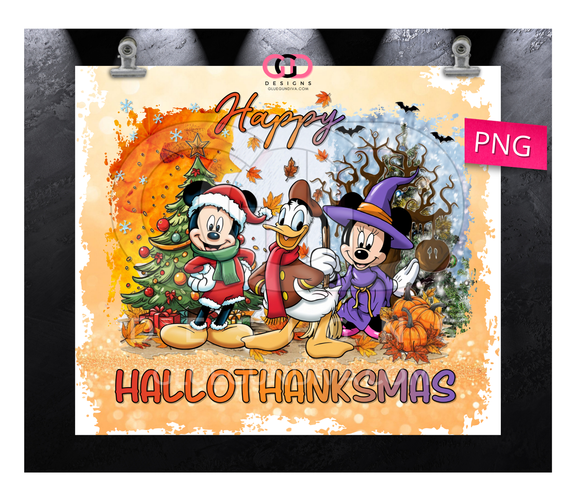 Mouse and Friends Hallothanksmas - Digital tumbler wrap for 20 oz skinny straight tumbler