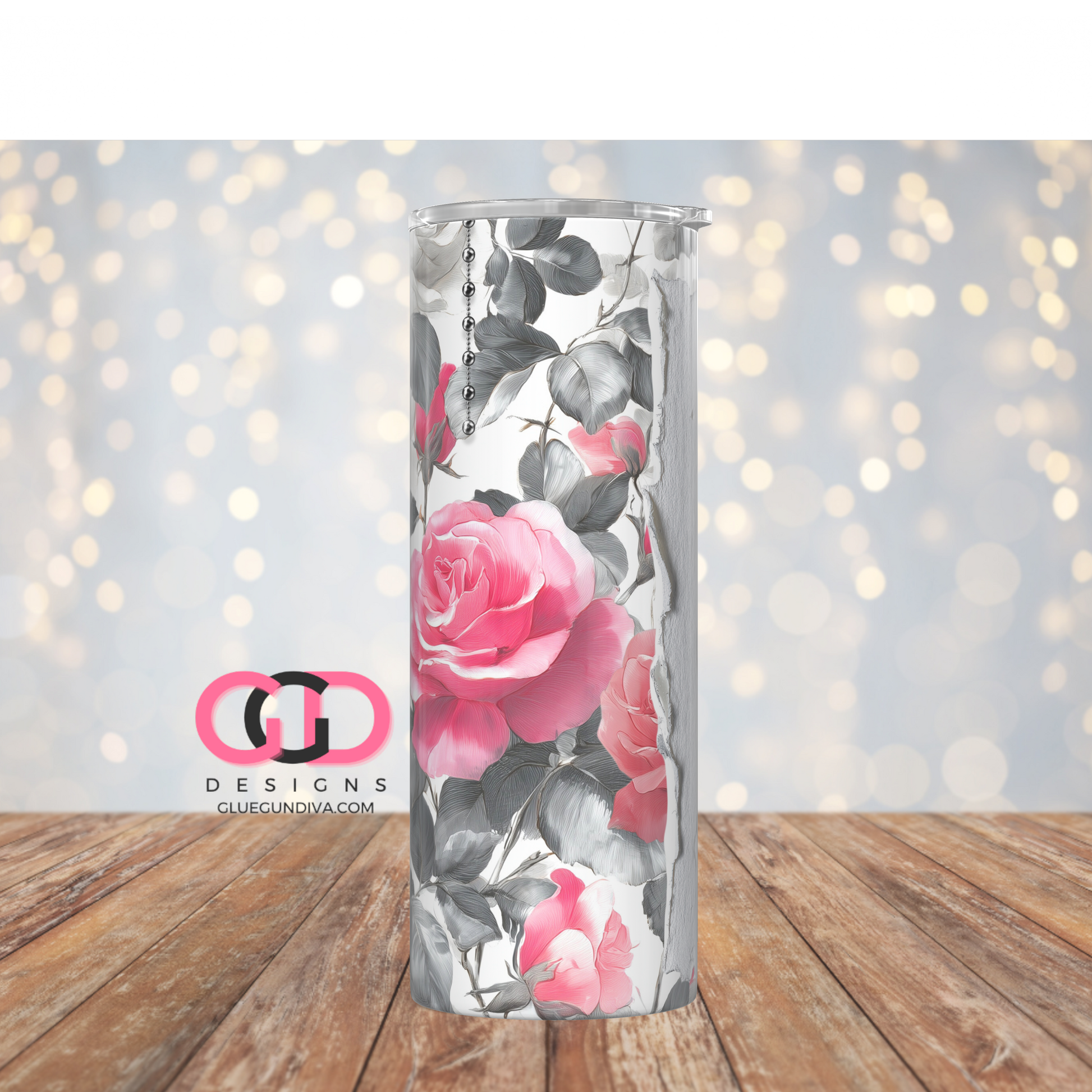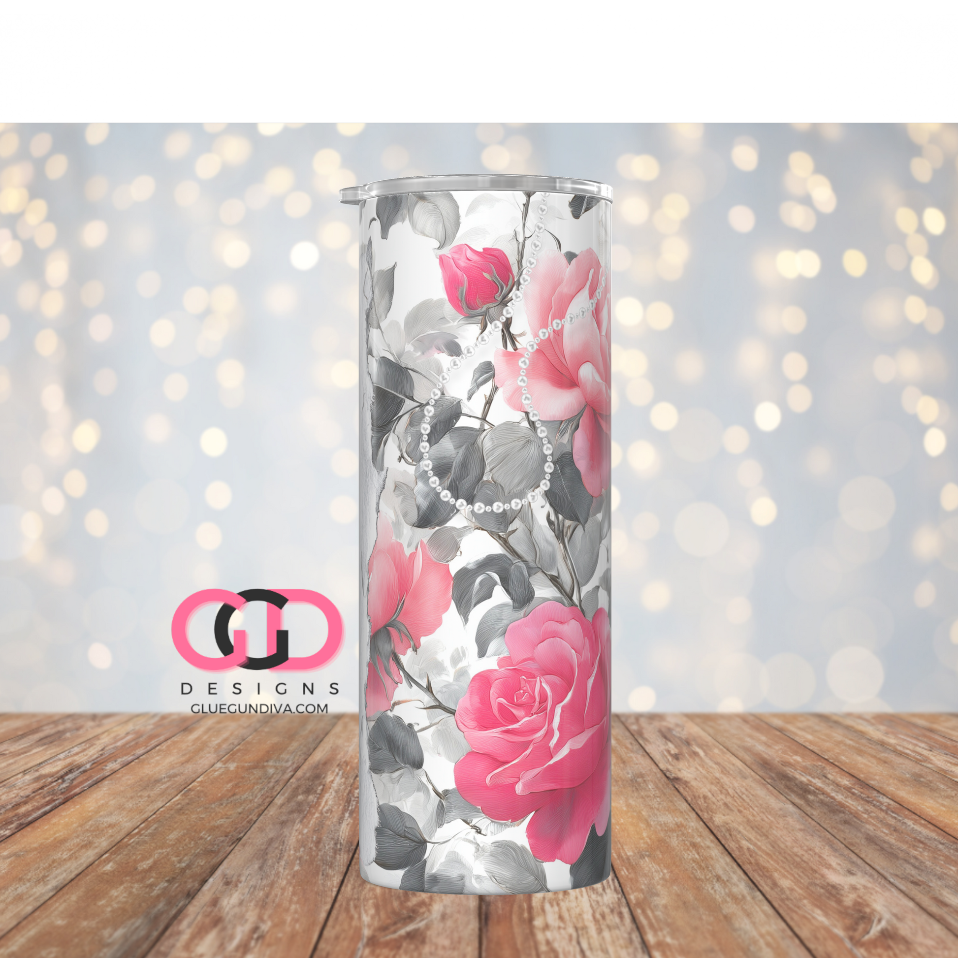 Pearl Strings and Pink Roses- Digital tumbler wrap for 20 oz skinny straight tumbler
