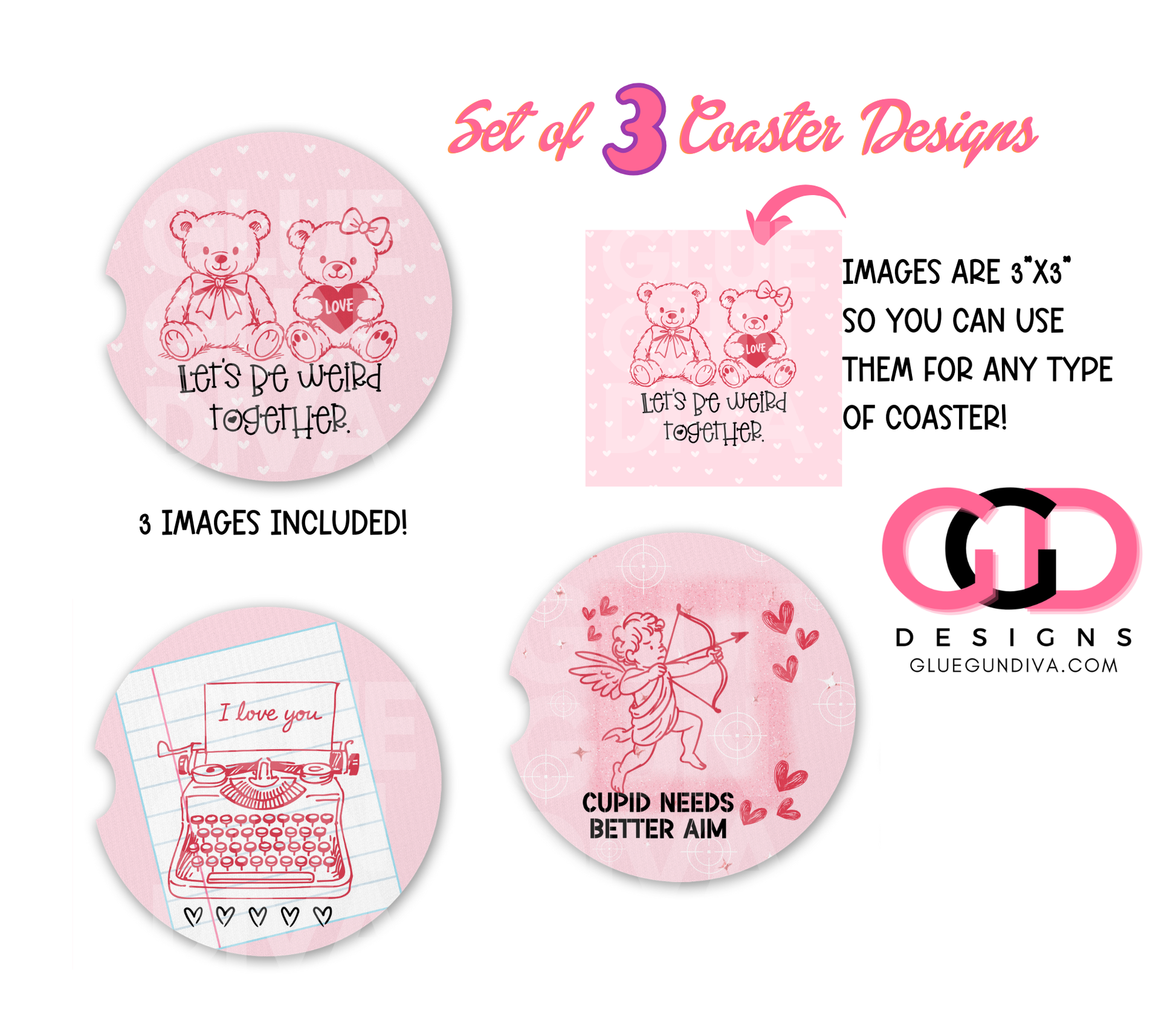 Pink Valentine Icons - Designs for Coasters