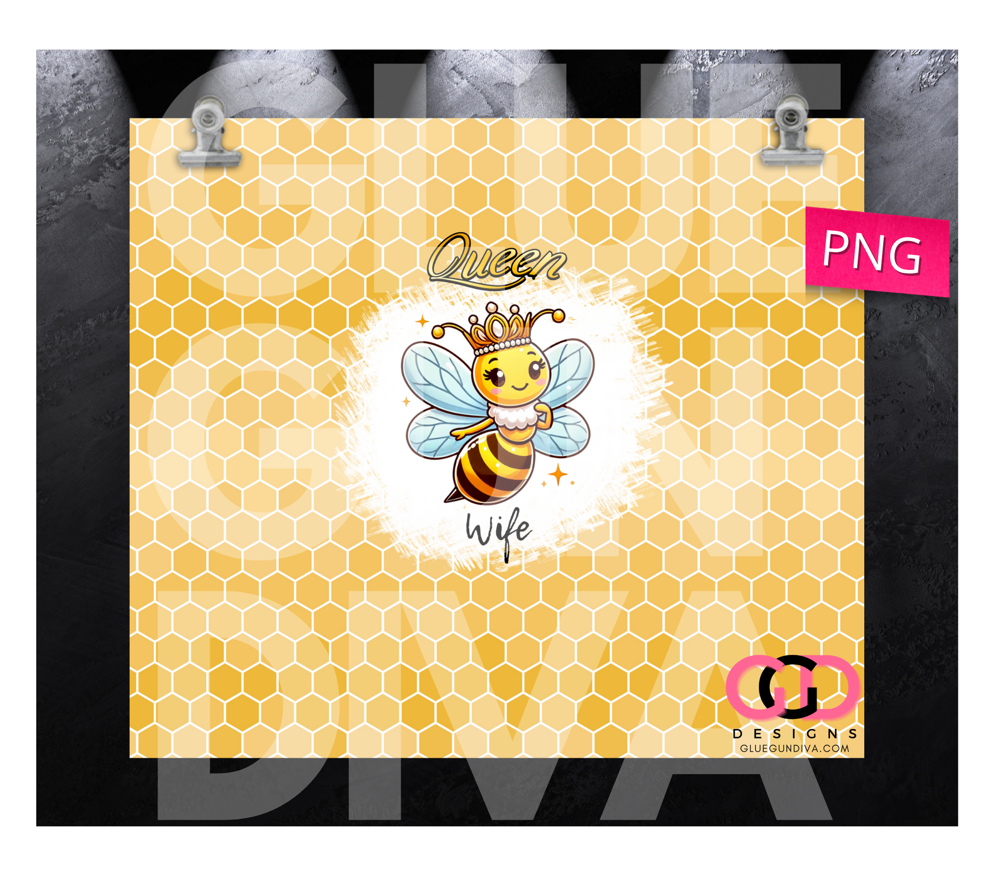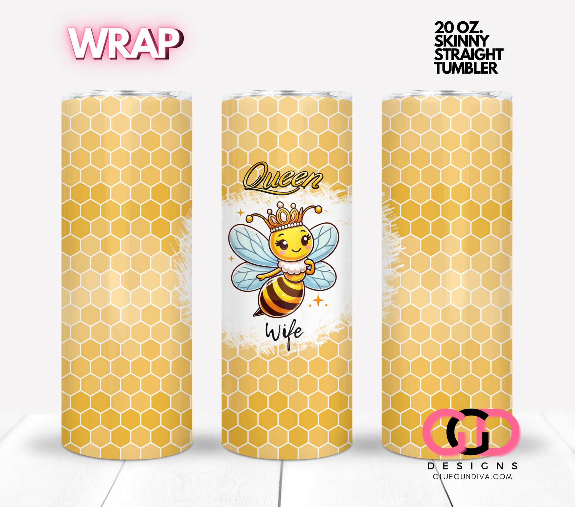 Queen Bee Wife- Digital tumbler wrap for 20 oz skinny straight tumbler