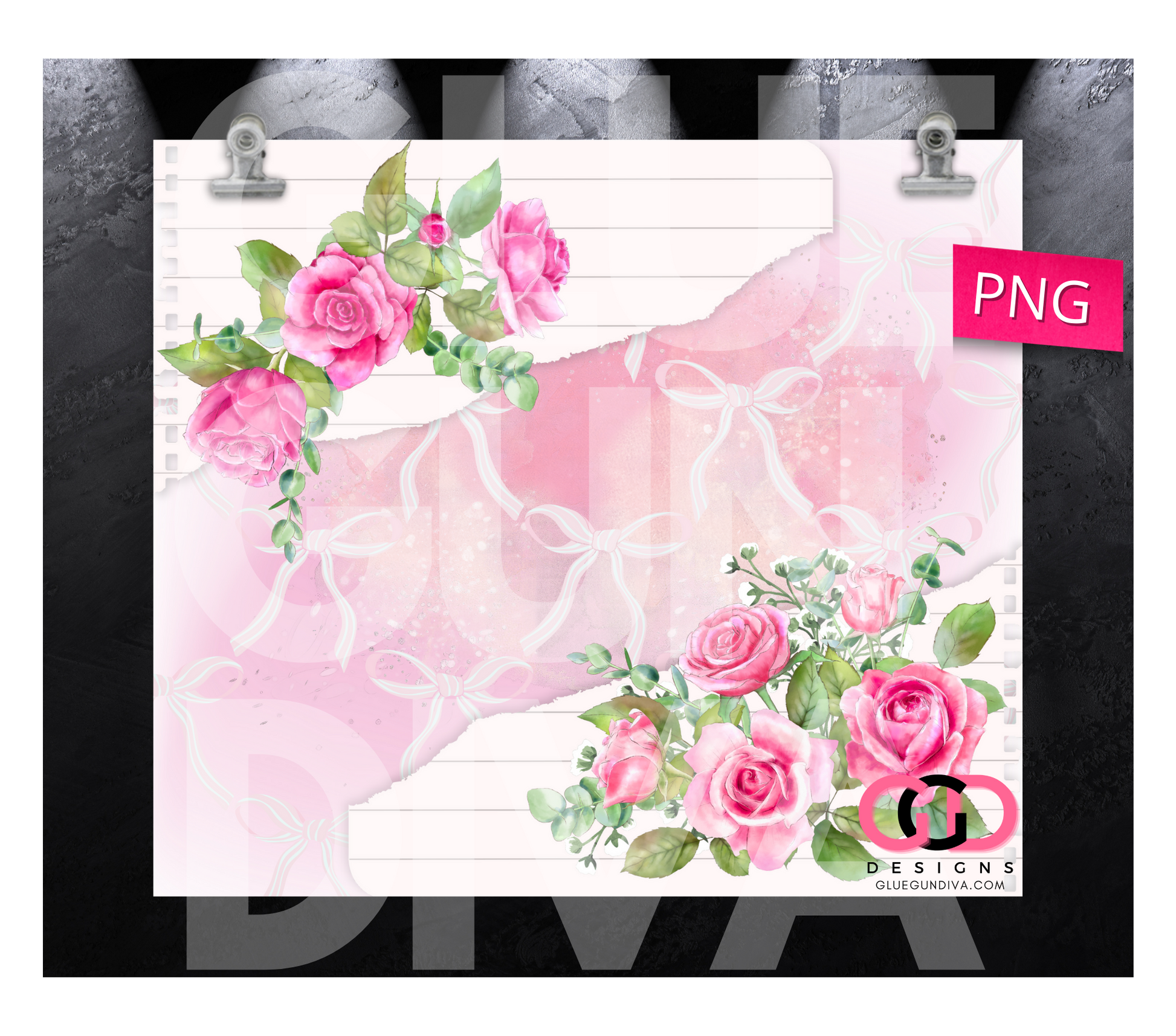 Roses and Bows- Digital tumbler wrap for 20 oz skinny straight tumbler