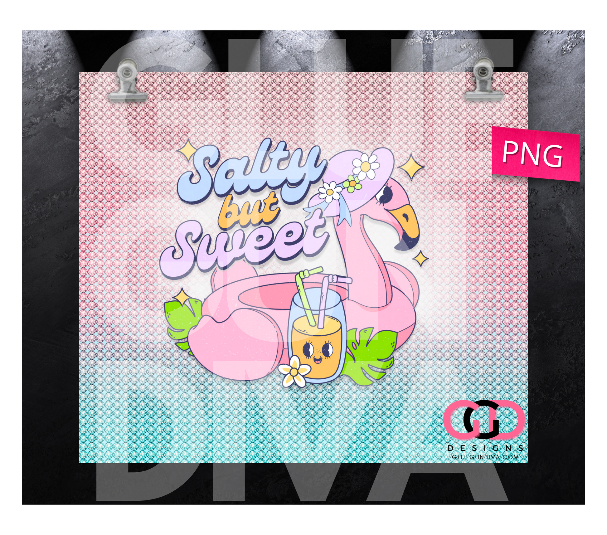 Salty but Sweet Flamingo - Digital tumbler wrap for 20 oz skinny straight tumbler
