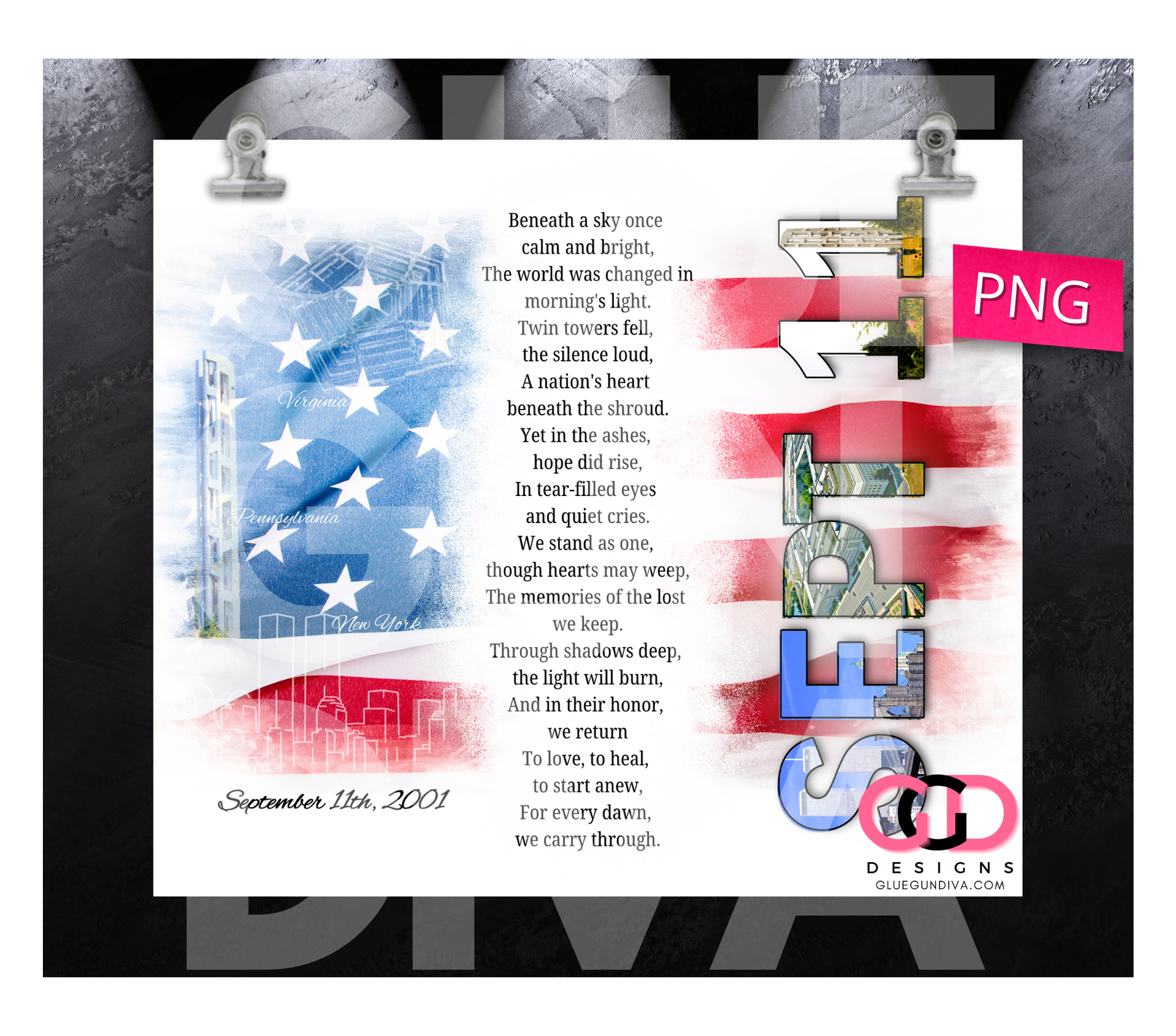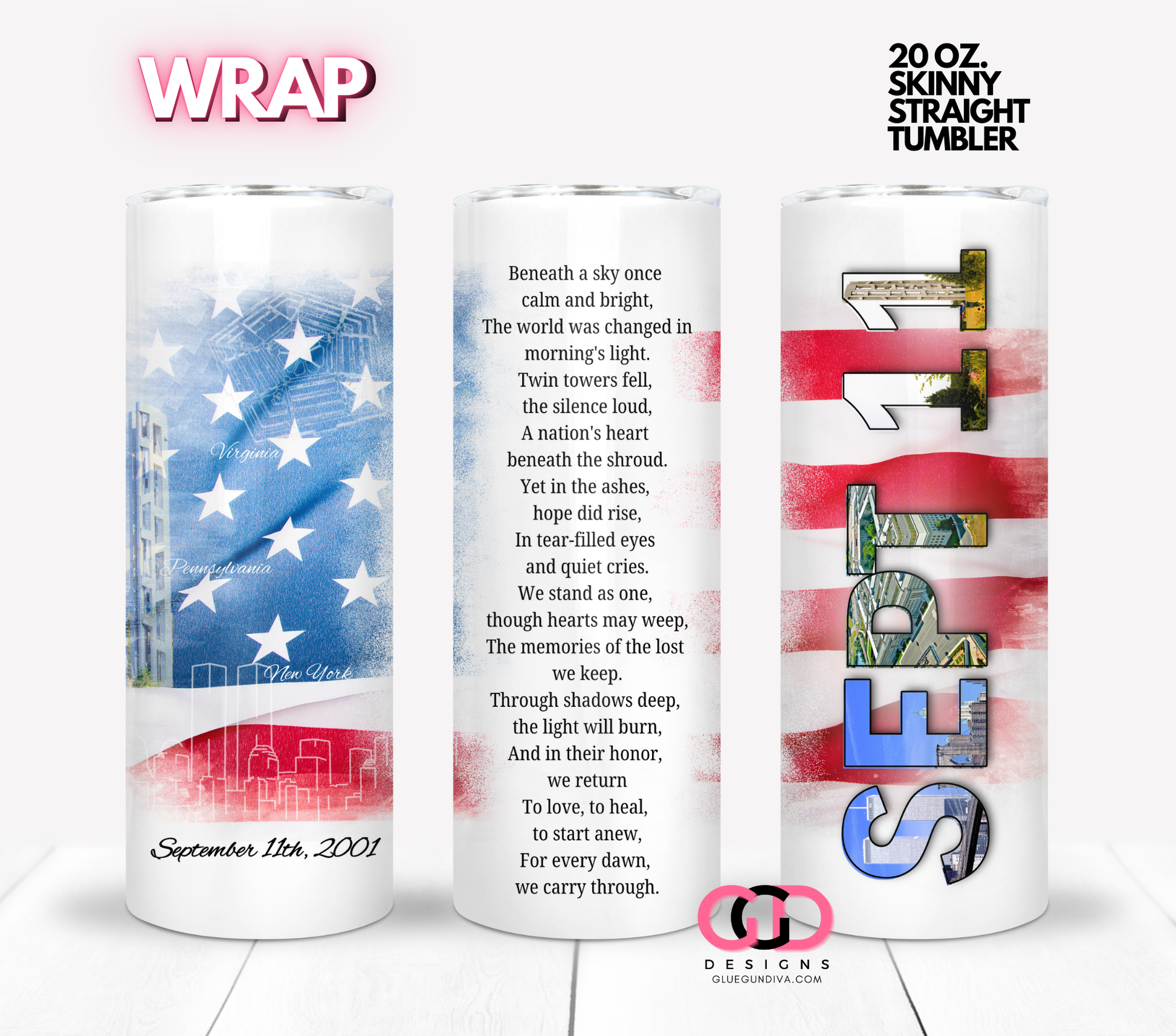 September 11th Poem- Digital tumbler wrap for 20 oz skinny straight tumbler