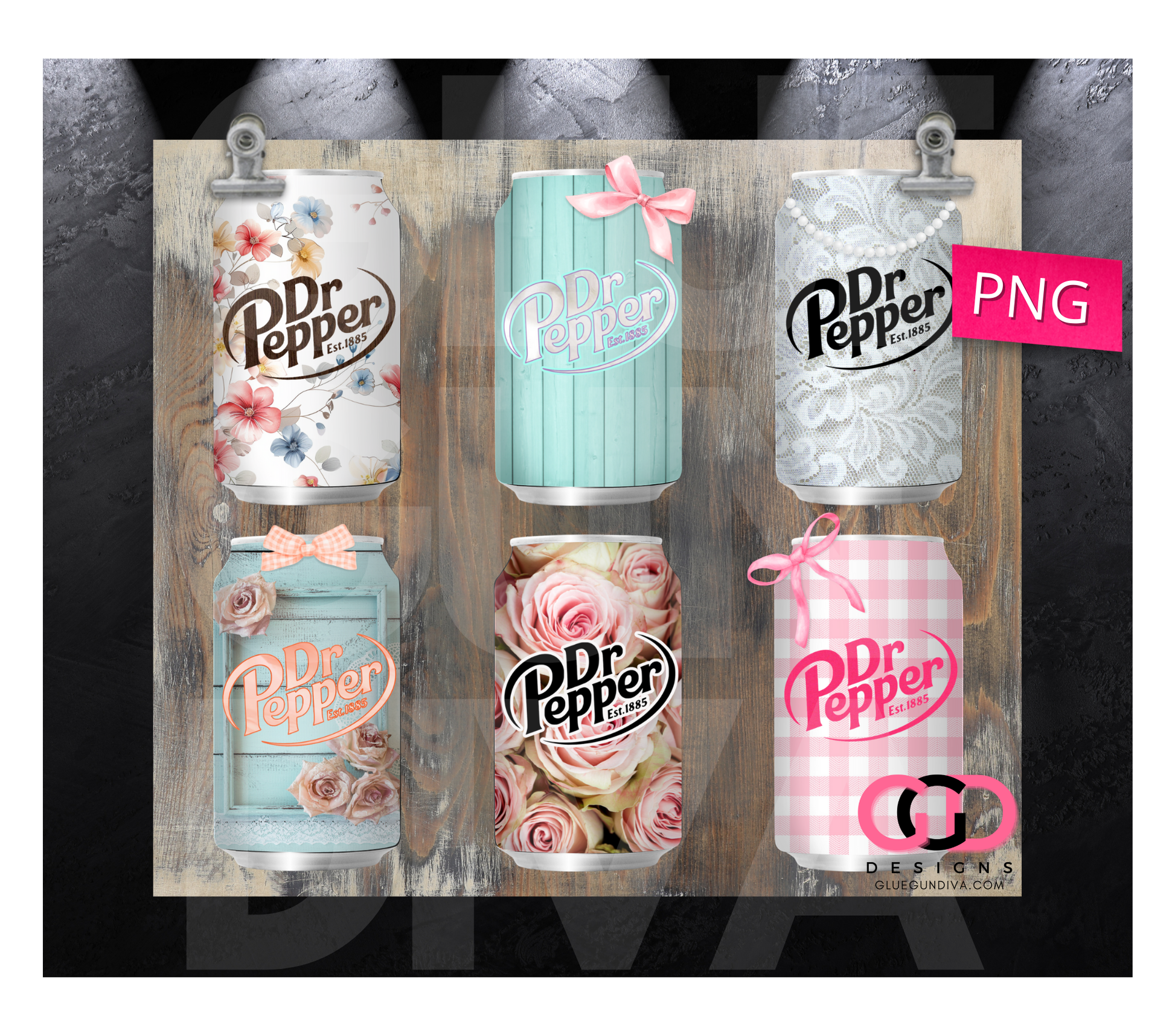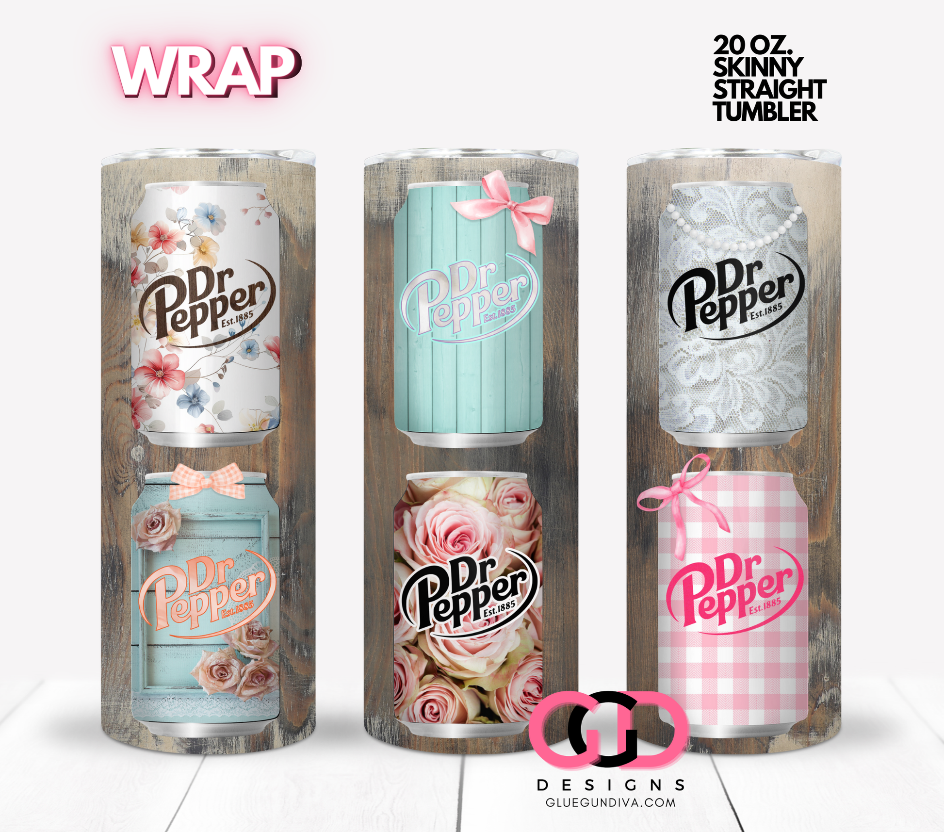 Shabby Chic Dr Pepper- Digital tumbler wrap for 20 oz skinny straight tumbler