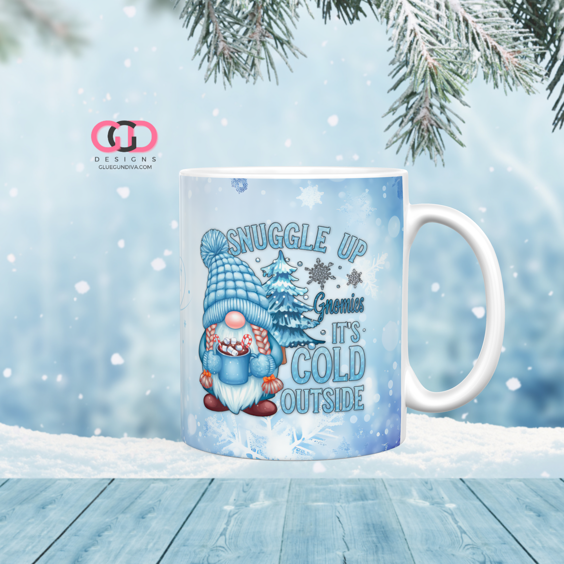Snuggle Up Gnomies - Digital mug wrap for 11 and 15 oz