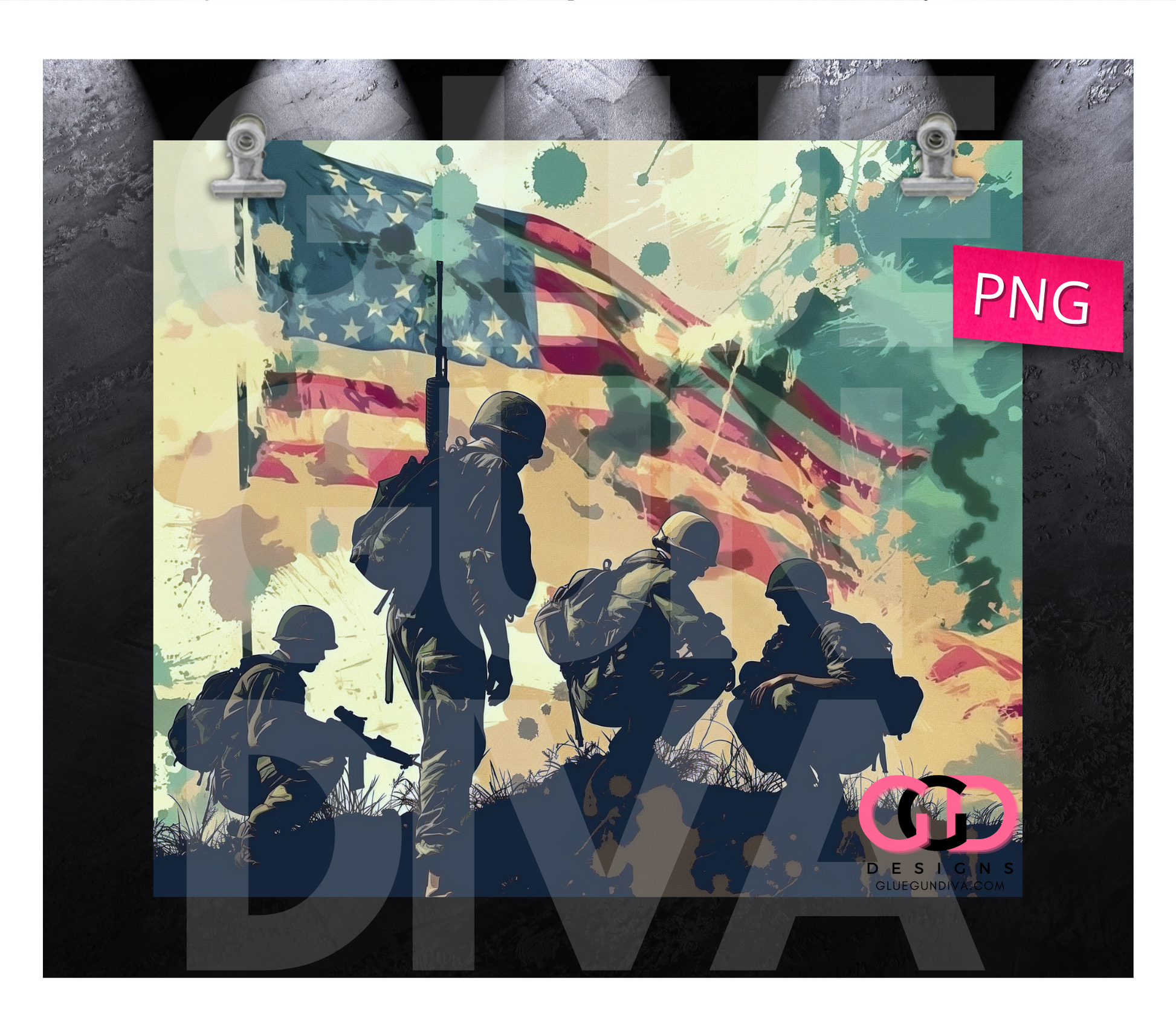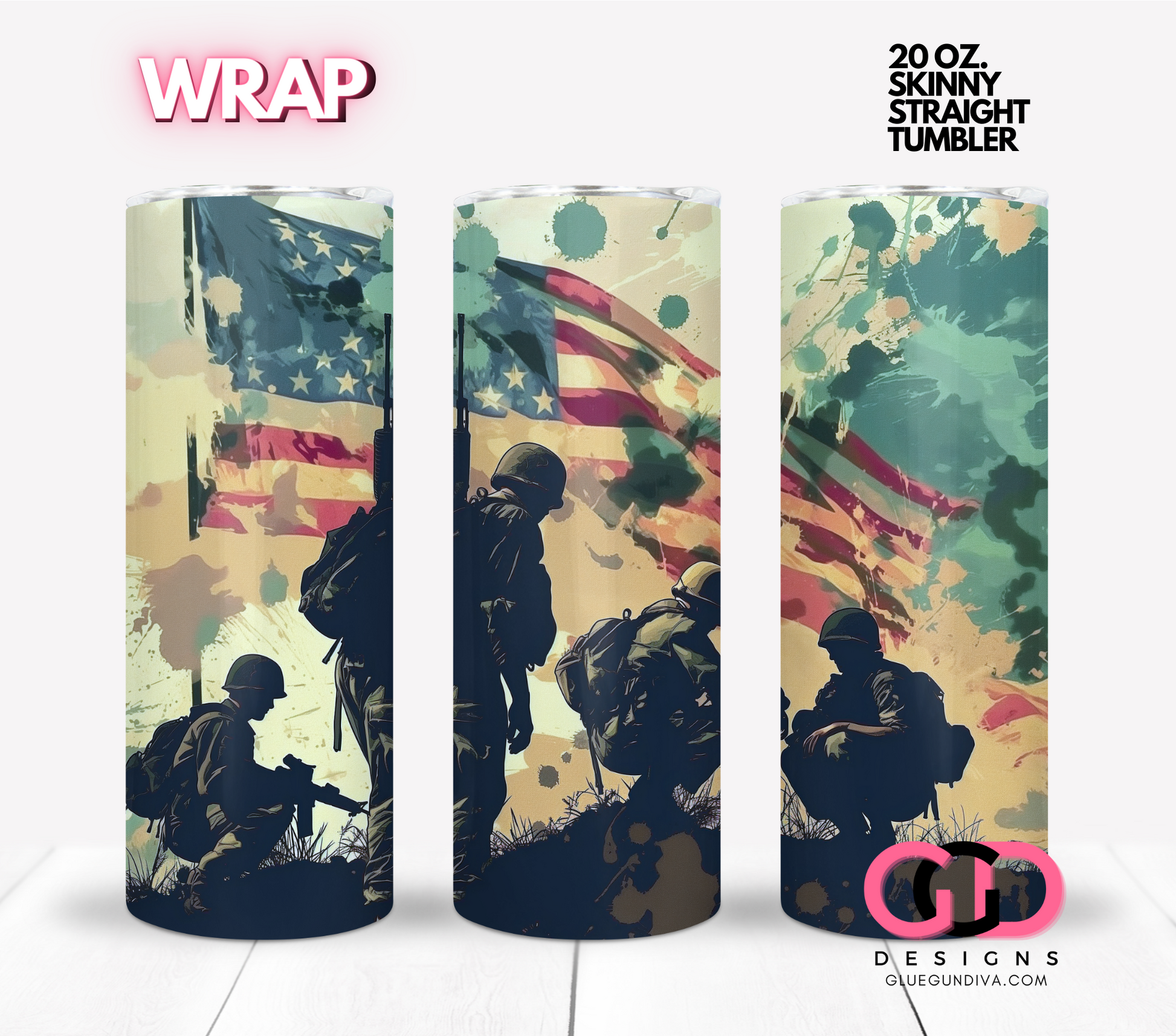 Soldiers and the USA Flag- Digital tumbler wrap for 20 oz skinny straight tumbler