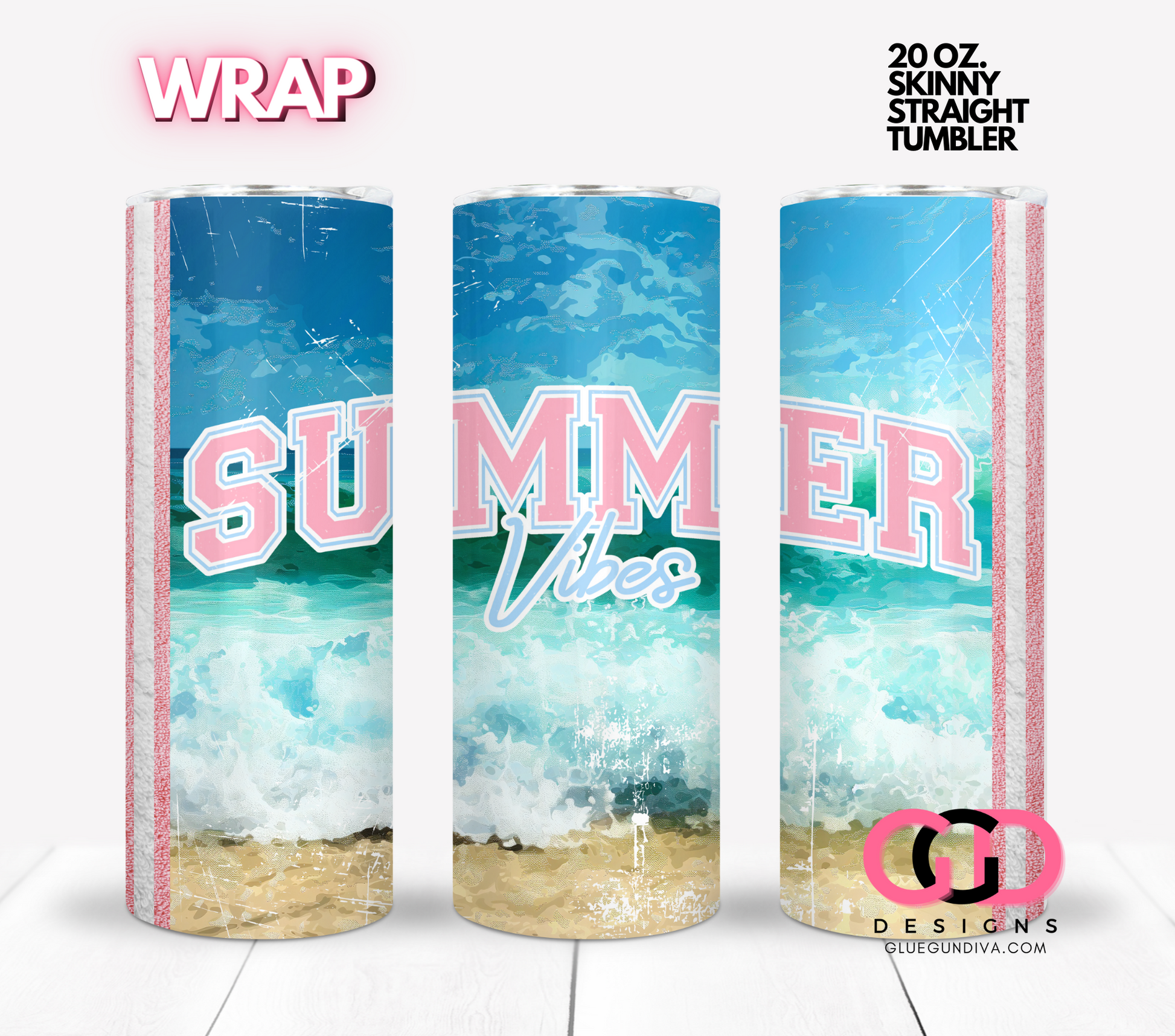 Summer Vibes - Digital tumbler wrap for 20 oz skinny straight tumbler