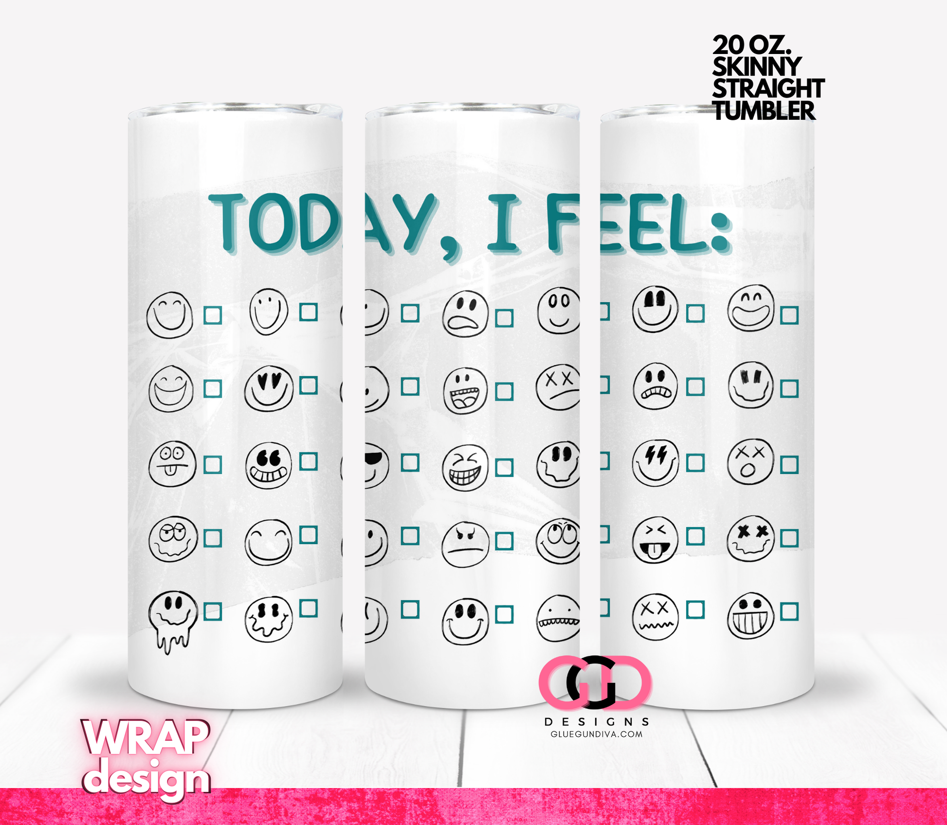 Today I Feel - Digital tumbler wrap for 20 oz skinny straight tumbler