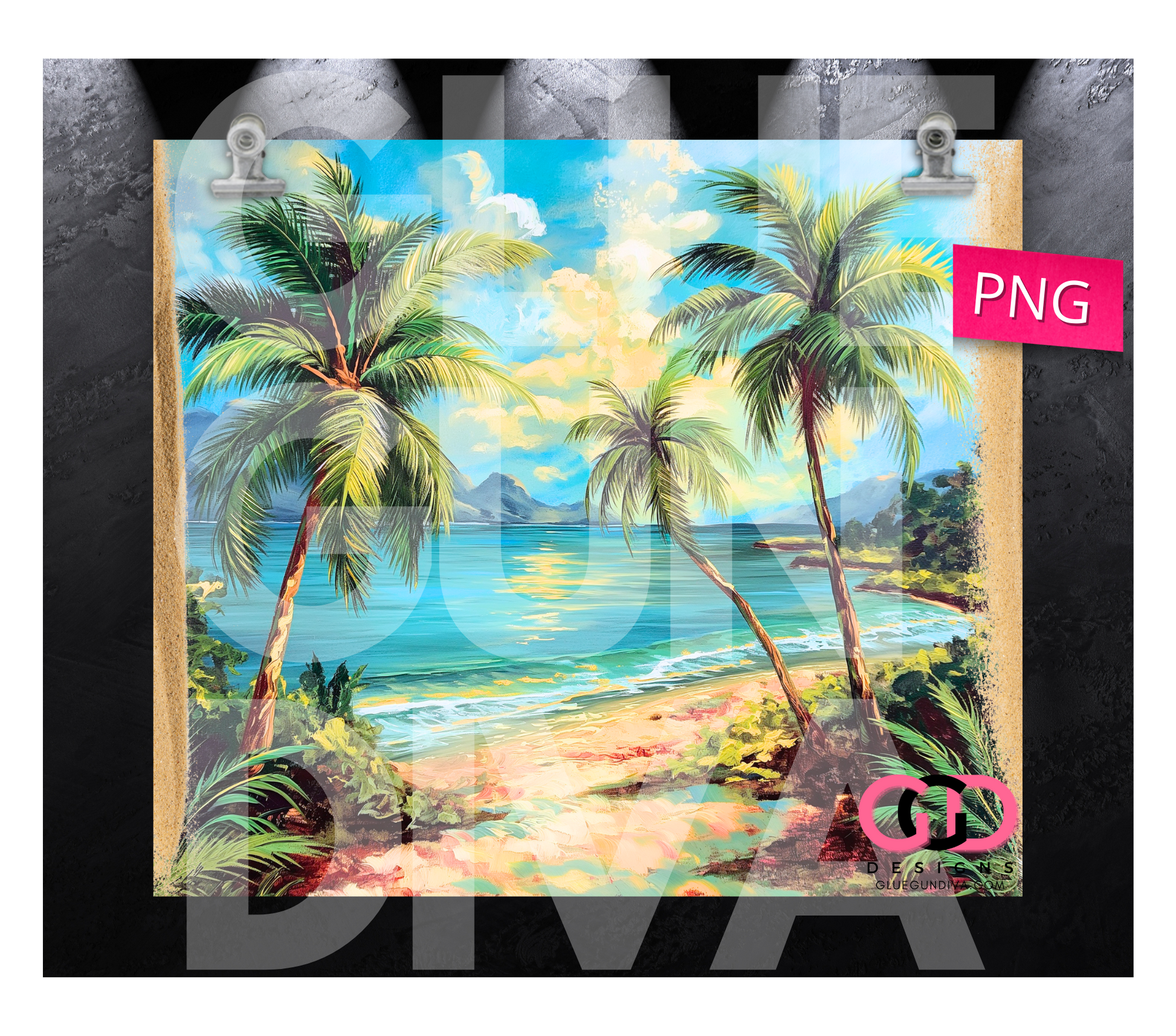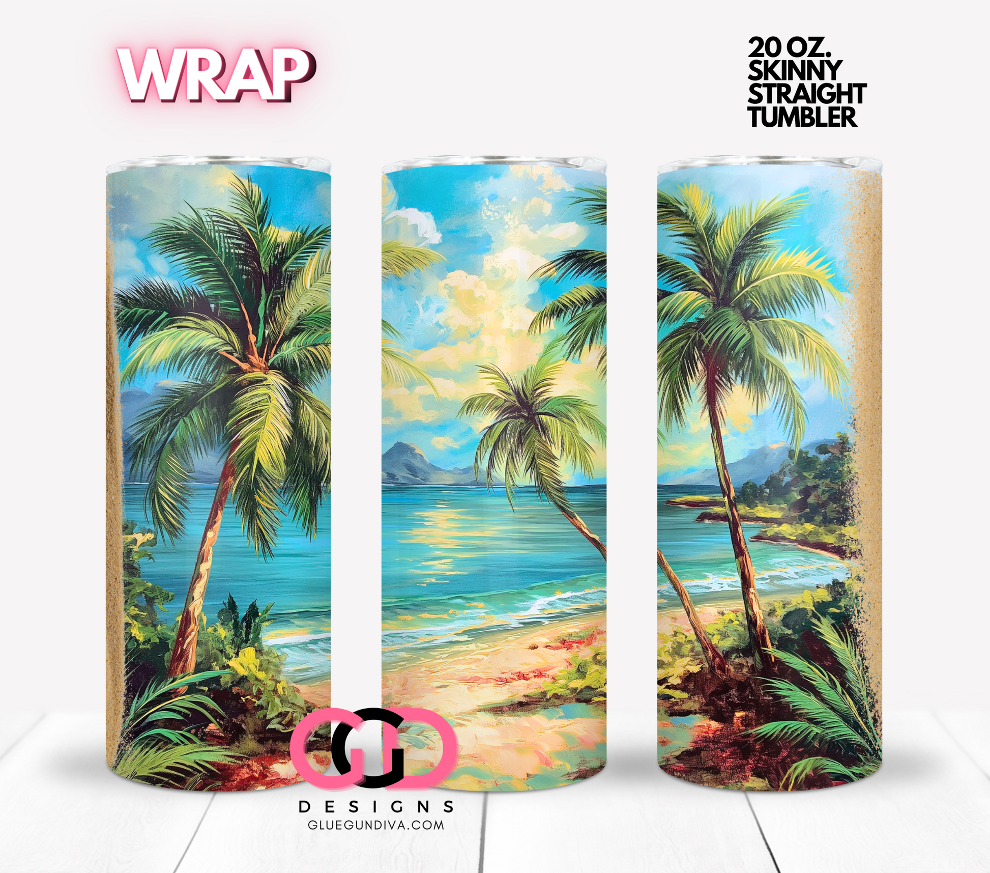 Tropical Beach - Digital tumbler wrap for 20 oz skinny straight tumbler