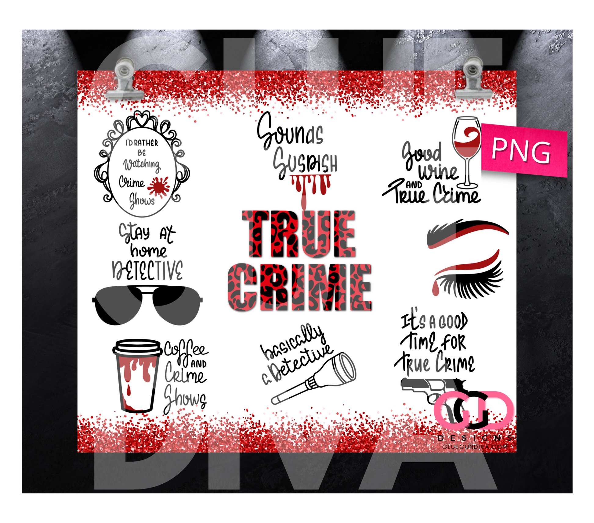 True Crime Collage - Digital tumbler wrap for 20 oz skinny straight tumbler