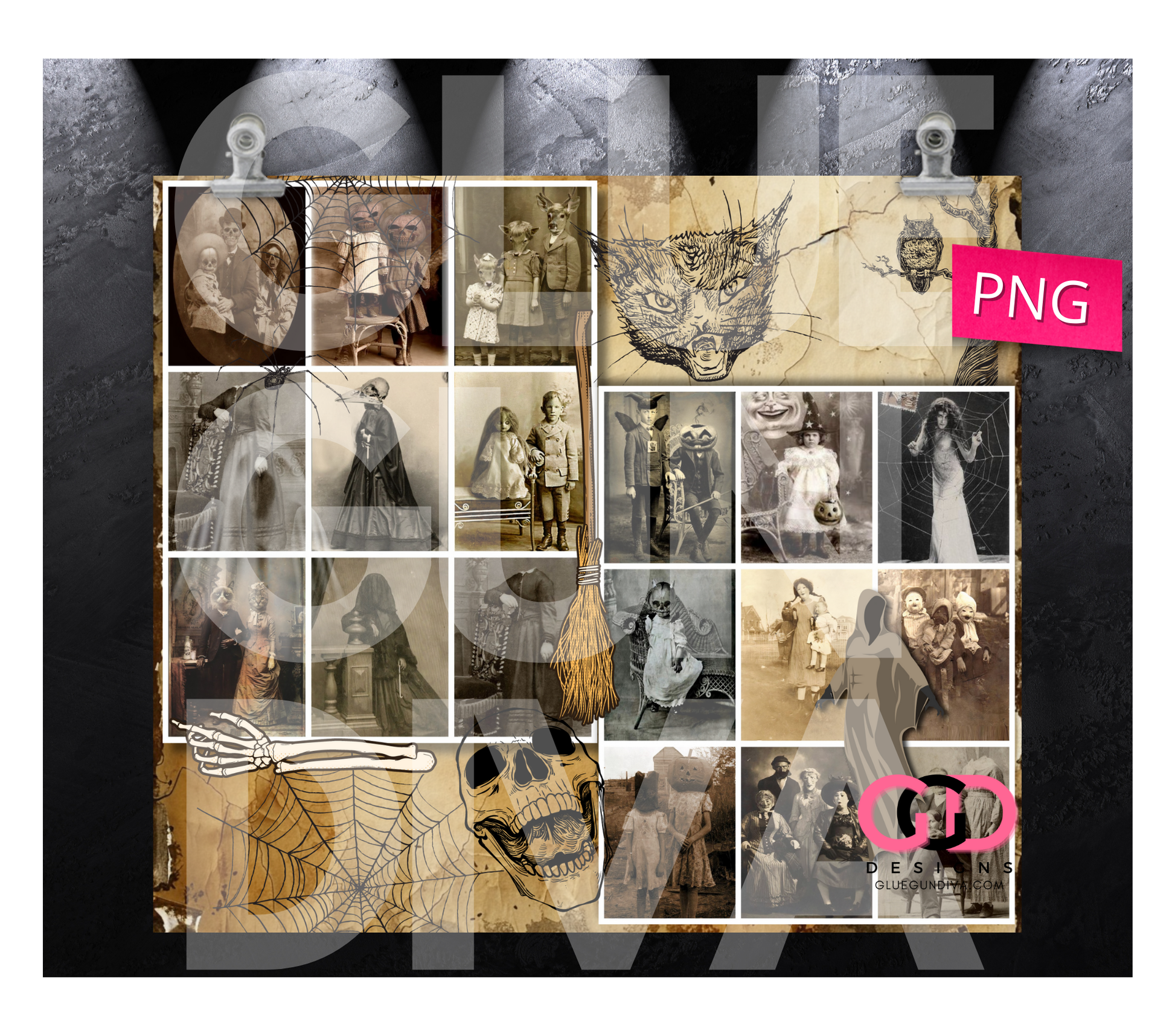 Vintage Halloween Photos- Digital tumbler wrap for 20 oz skinny straight tumbler