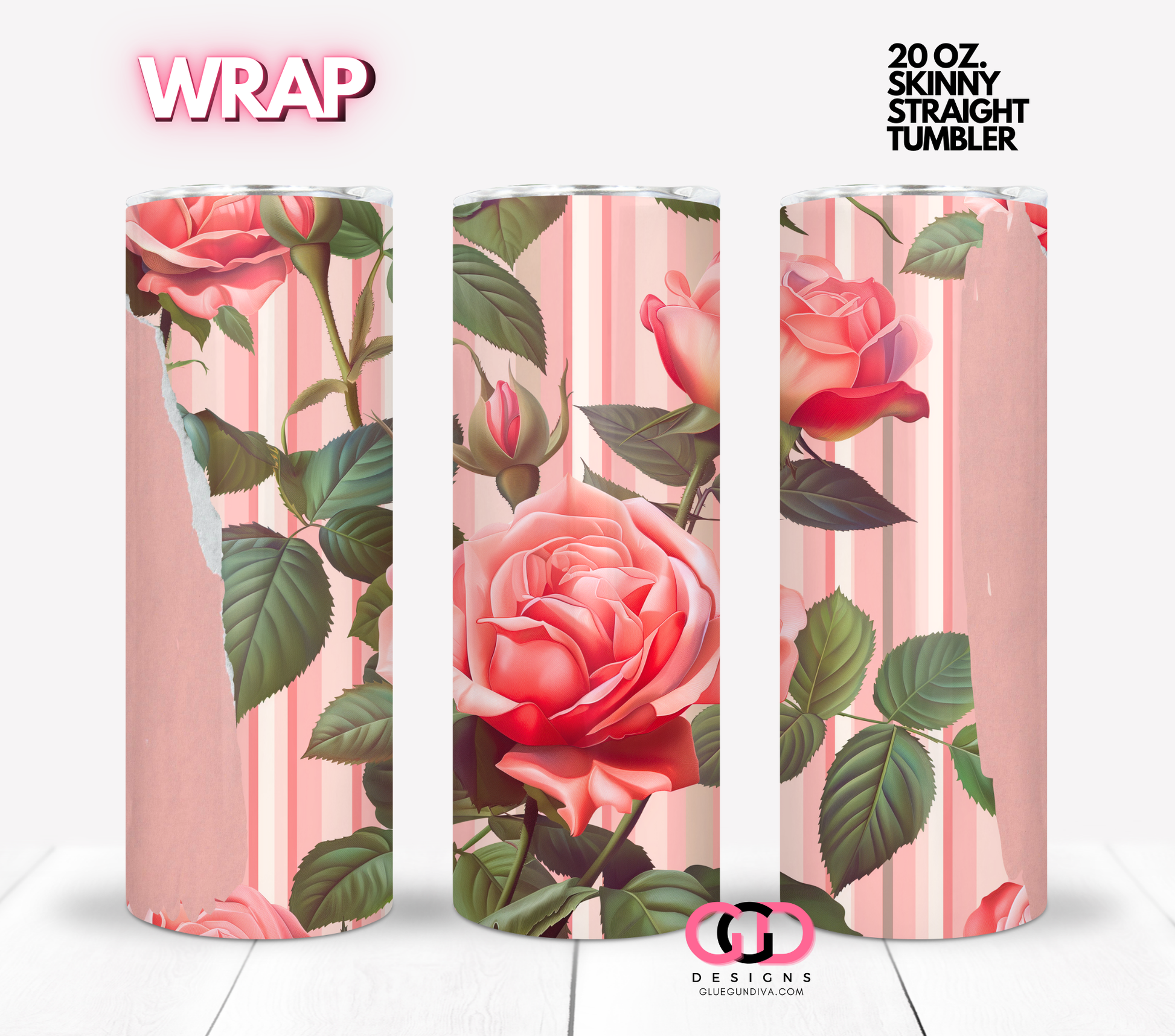 Vintage Pink Roses and Paper- Digital tumbler wrap for 20 oz skinny straight tumbler
