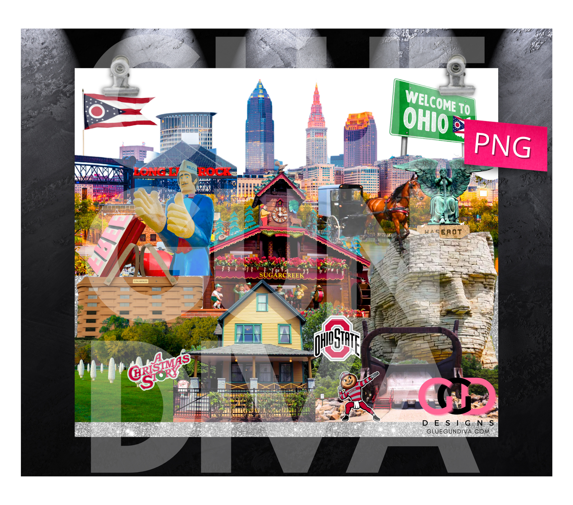 Welcome to Ohio- Digital tumbler wrap for 20 oz skinny straight tumbler