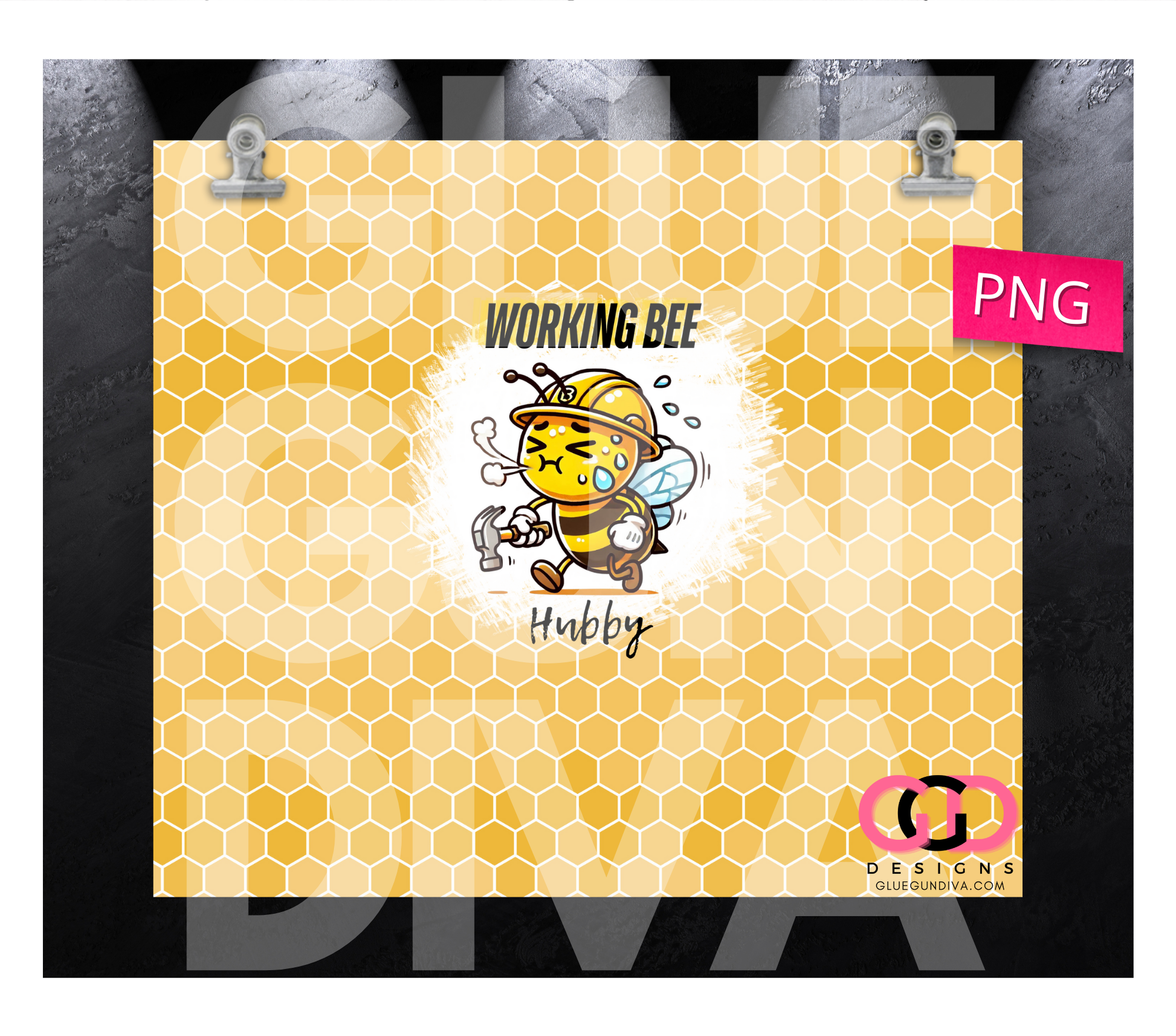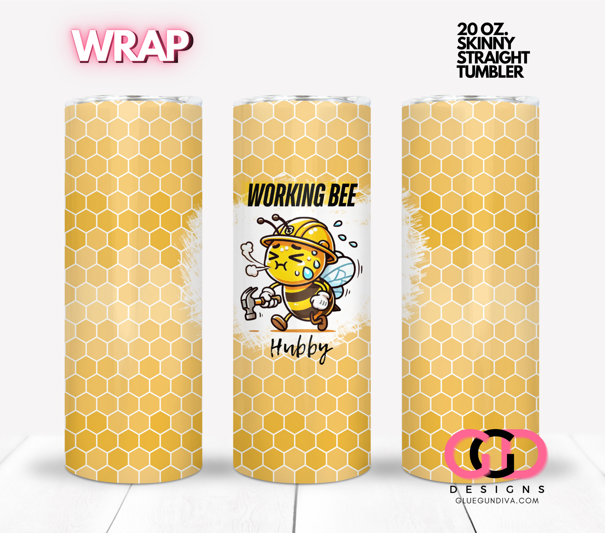 Working Bee Hubby- Digital tumbler wrap for 20 oz skinny straight tumbler
